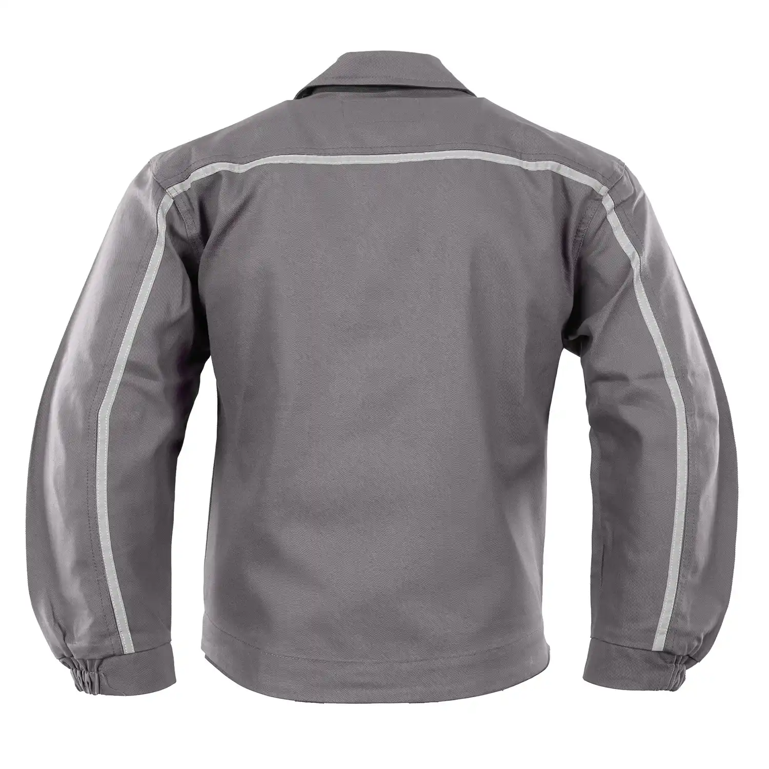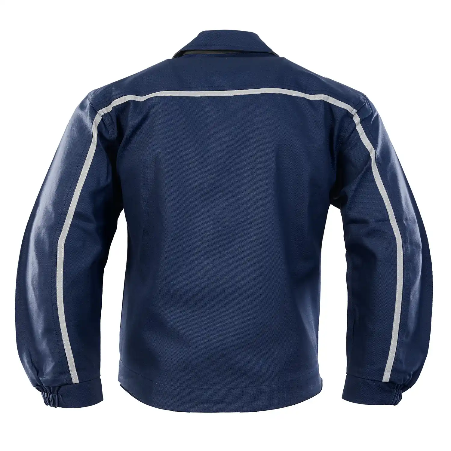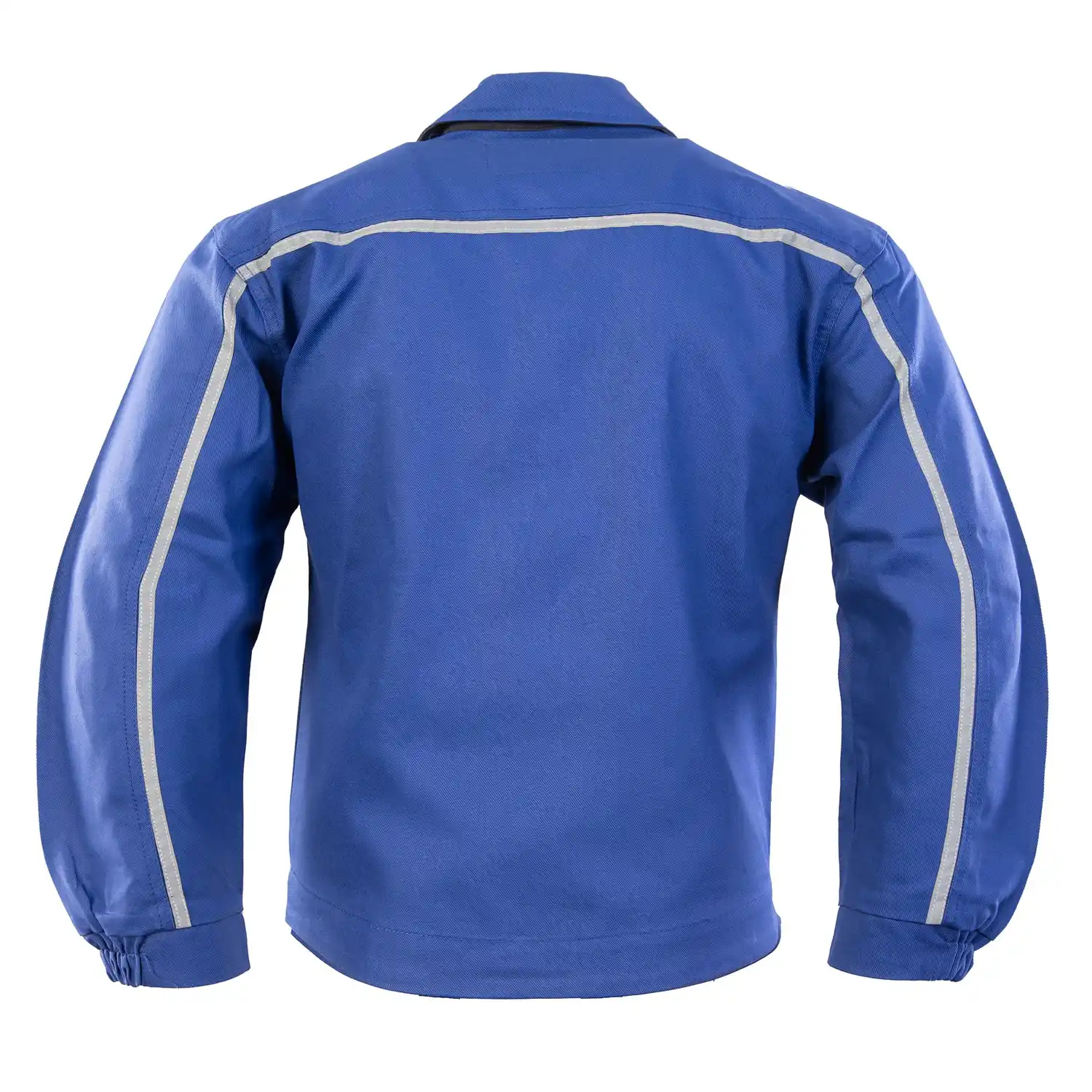 w newralgicznych miejscach. Konstrukcja bluzy została wzmocniona podwójnymi szwami szytymi mocną nicią oraz licznymi ryglówkami, co gwarantuje jej trwałość i odporność na uszkodzenia. Bluza zapinana jest na guziki kryte listwą, co zapobiega zahaczaniu o elementy otoczenia, a elastyczna gumka ściągająca u dołu zabezpiecza przed wiatrem i odstawaniem odzieży. Funkcjonalność dopełniają mankiety na guzik oraz zestaw praktycznych kieszeni: dwie boczne, dwie górne kryte listwą na rzep oraz dedykowana kieszonka na długopis. Produkt zgodny z normą