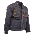 i przyjazność dla skóry. Aby zapewnić maksymalną żywotność w trudnych warunkach roboczych, bluzę wyposażono w podwójne szwy szyte widoczną, mocną nicią, potężną ilość ryglówek w miejscach newralgicznych oraz dodatkowe wzmocnienia na łokciach. Komfort użytkowania podnoszą zintegrowane transpiratory powietrza wspierające wentylację. Bluza posiada bezpieczne zapięcie na guziki, które dla ochrony przed zahaczeniem ukryto pod materiałową listwą. Organizację narzędzi zapewniają przestrzenne i wzmocnione kieszenie zapinane na rzepy. Dzięki elastycznej gumce ściągającej na dole oraz mankietom na guzik, odzież świetnie przylega do sylwetki, zabezpieczając przed wiatrem i odstawaniem materiału. Produkt w pełni spełnia rygorystyczne wymogi normy