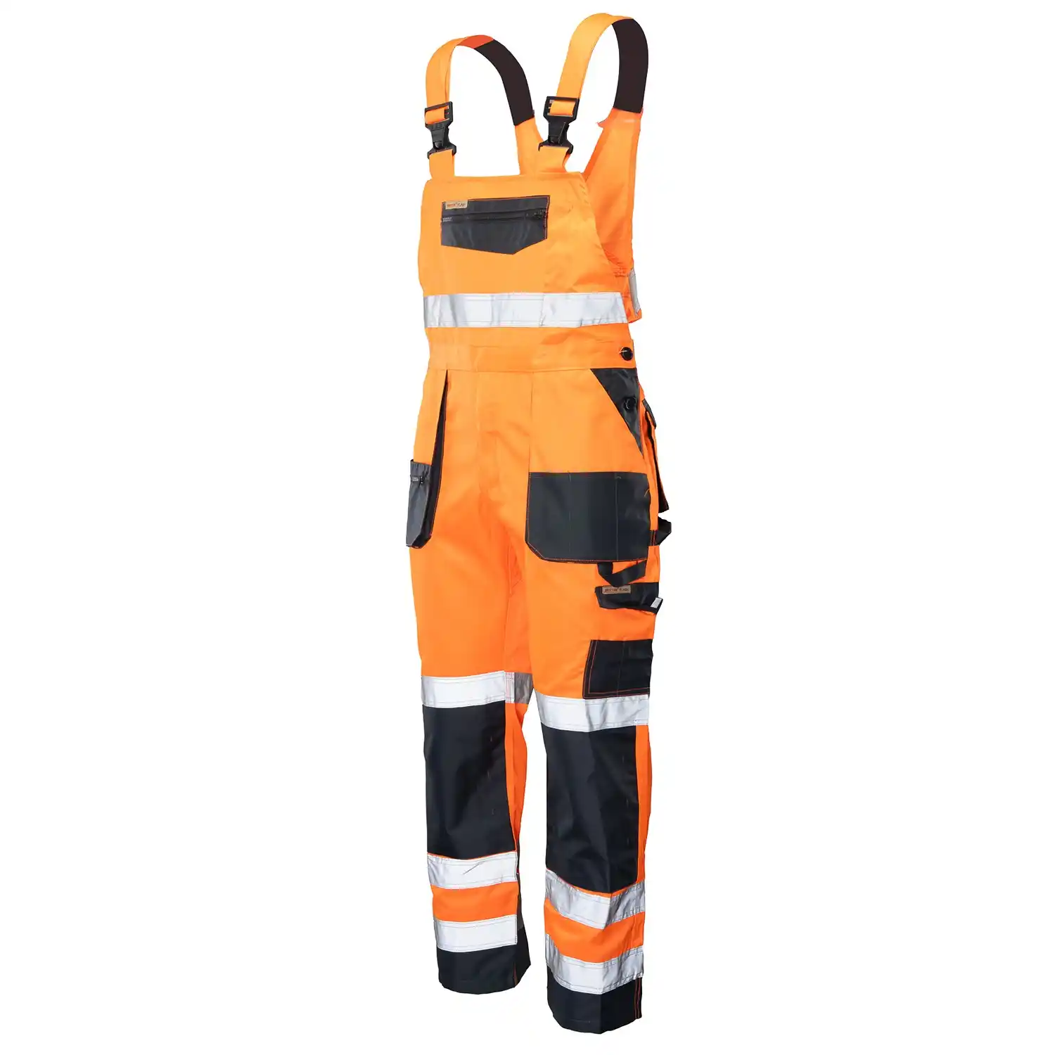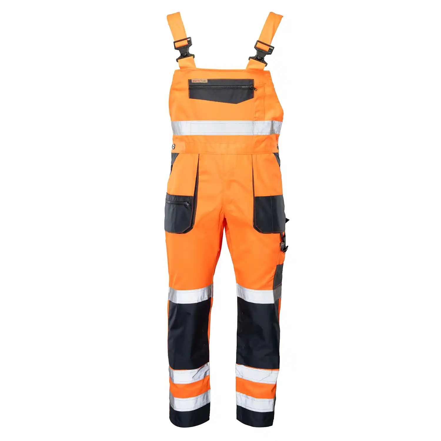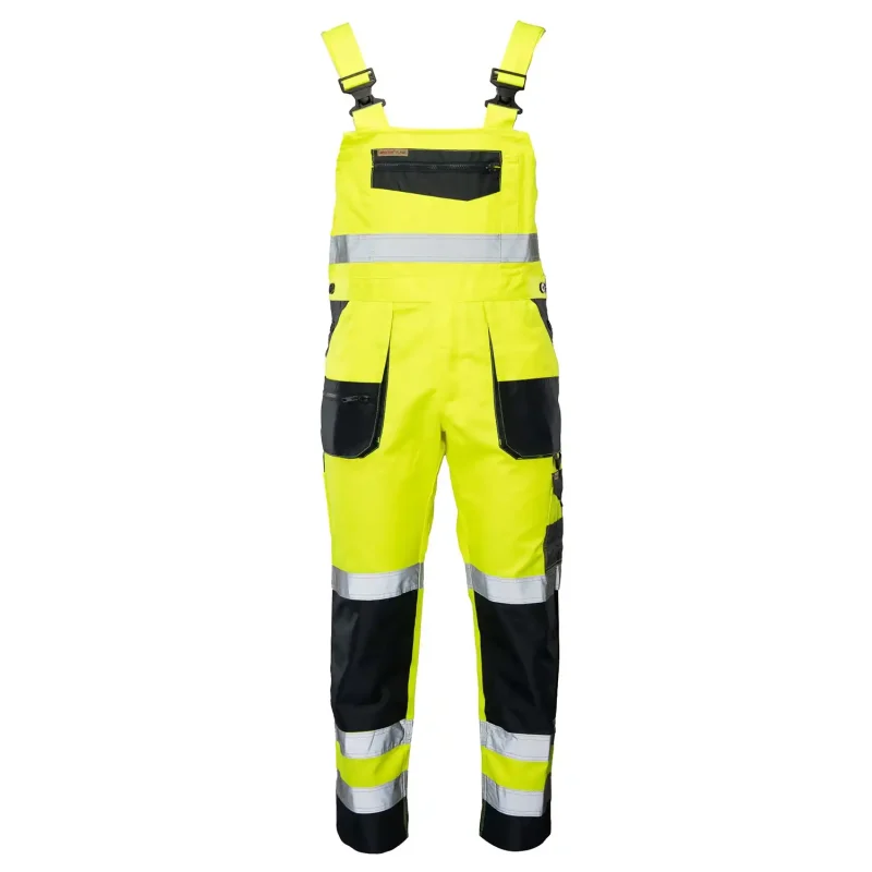 Spodnie ogrodniczki Brixton Flash to profesjonalna odzież ochronna (Kat. II, Klasa 2), stworzona dla pracowników budowlanych, drogowych i operatorów maszyn, dla których doskonała widoczność i trwałość są priorytetem. Uszyte z wysokogatunkowej tkaniny łączącej bawełnę (55%) i poliester (45%) o optymalnej gramaturze 260 g/m², zapewniają wieloletnią stabilność rozmiarów i kolorów. Bezpieczeństwo w każdych warunkach oświetleniowych gwarantują podwójne, fluorescencyjne taśmy odblaskowe naszyte na nogawkach, spełniające rygorystyczne normy EN ISO 20471. Posiadają one specjalny klin w kroku zwiększający swobodę ruchów oraz wzmocnienia