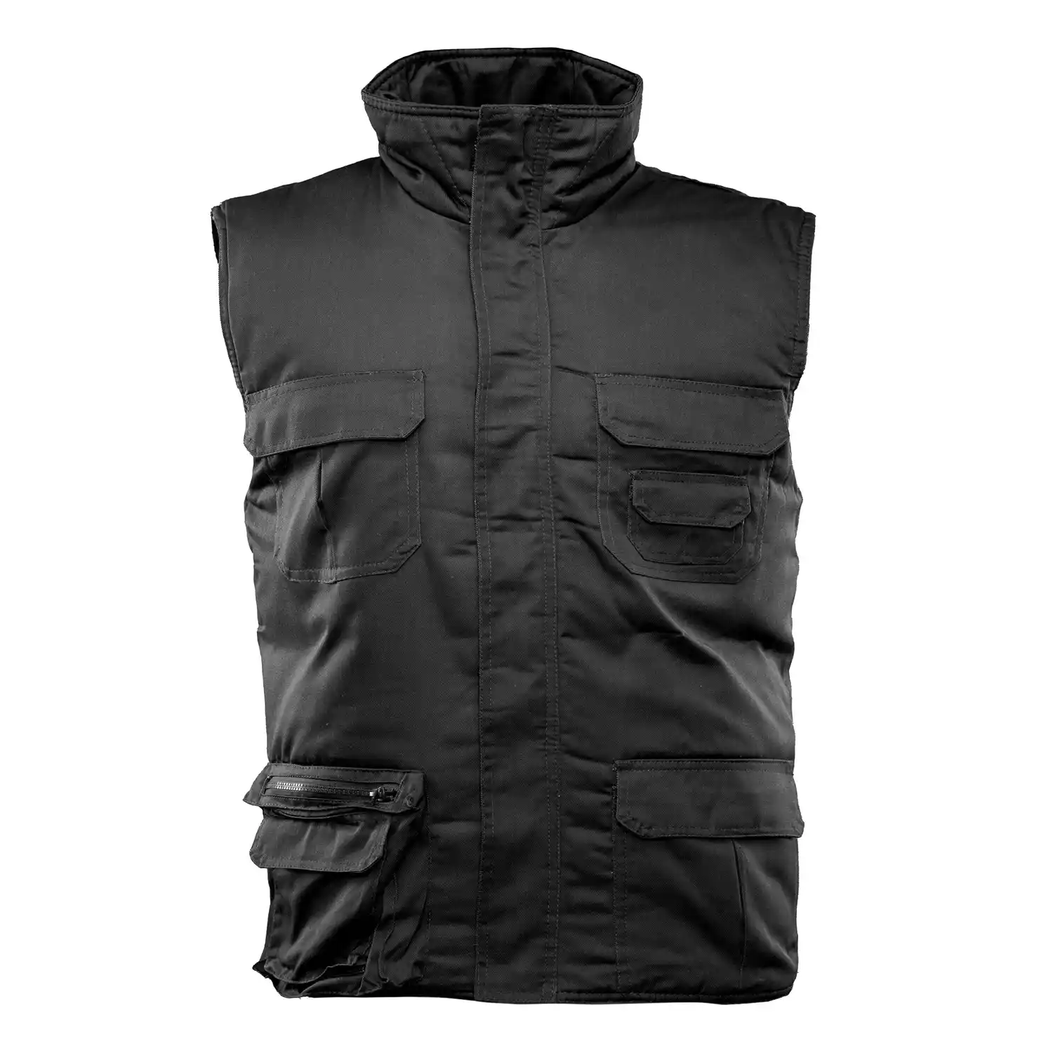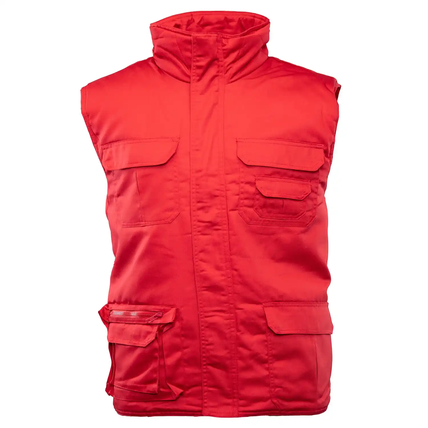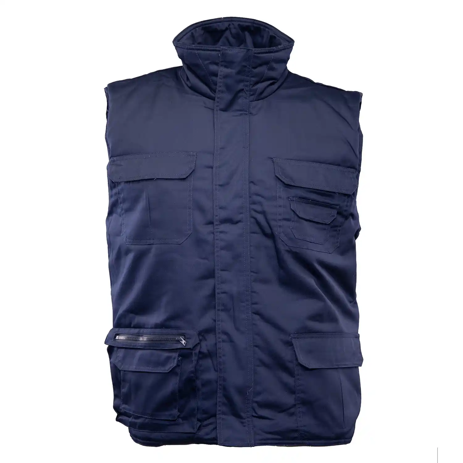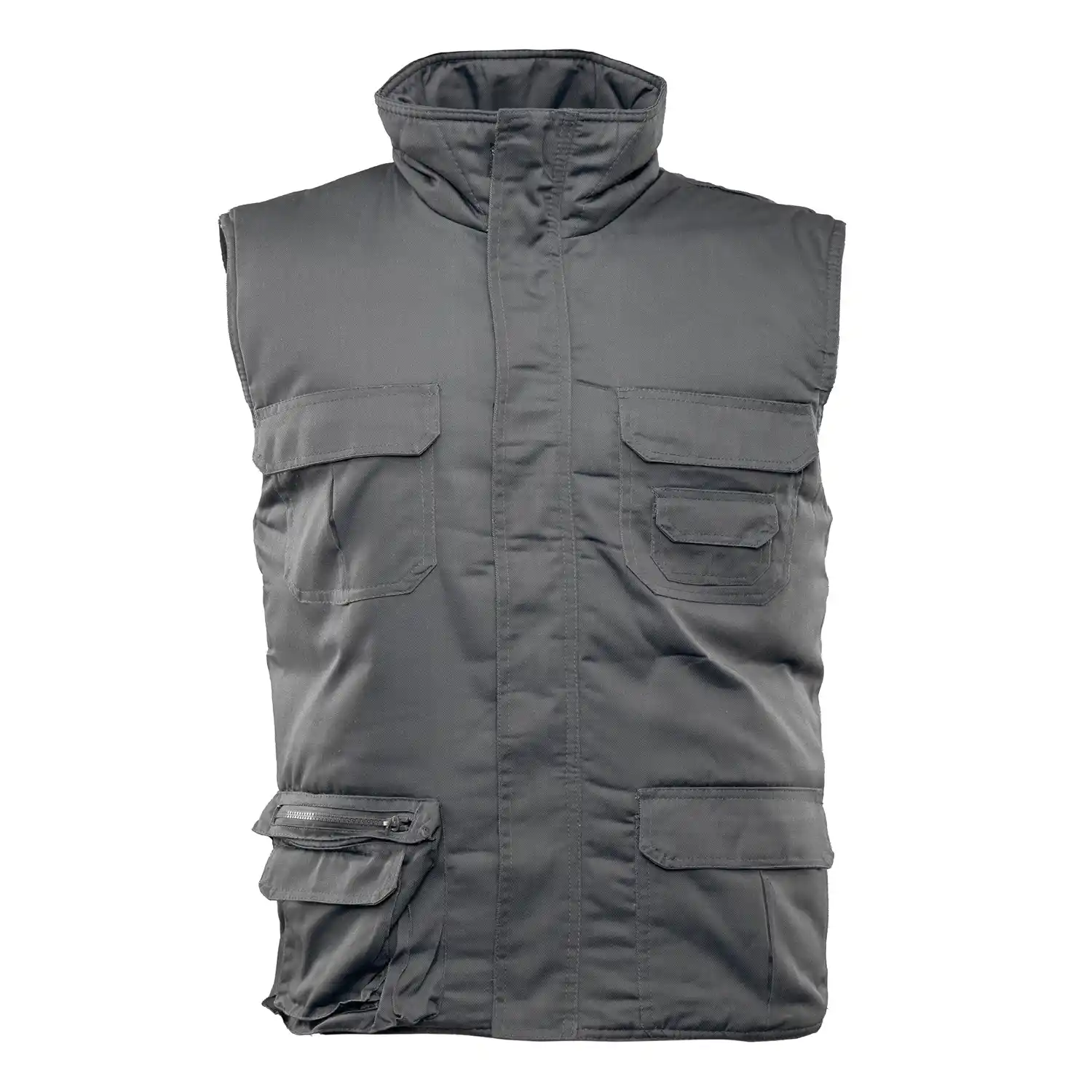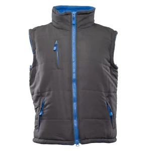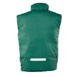 Model Benefit Brass to niezwykle praktyczny bezrękawnik roboczy, uszyty z wytrzymałej elanobawełny (65% poliester, 35% bawełna). Jego kluczowym atutem jest skuteczna ochrona przed niskimi temperaturami, którą zapewnia poliestrowa ocieplina o optymalnej gramaturze 200 g/m². Przepikowanie wewnętrznej izolacji skutecznie zapobiega jej przesuwaniu się, co znacząco wydłuża żywotność odzieży. Kamizelka oferuje świetną organizację pracy dzięki zaawansowanemu układowi aż siedmiu funkcjonalnych kieszeni na podręczne wyposażenie. Przed utratą ciepła i podmuchami wiatru chroni solidny zamek błyskawiczny bezpiecznie przykryty materiałową listwą. Jest to uniwersalna, trwała i komfortowa odzież na chłodniejsze miesiące, certyfikowana zgodnie z ogólną normą EN ISO 13688:2013.