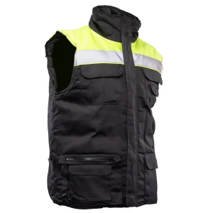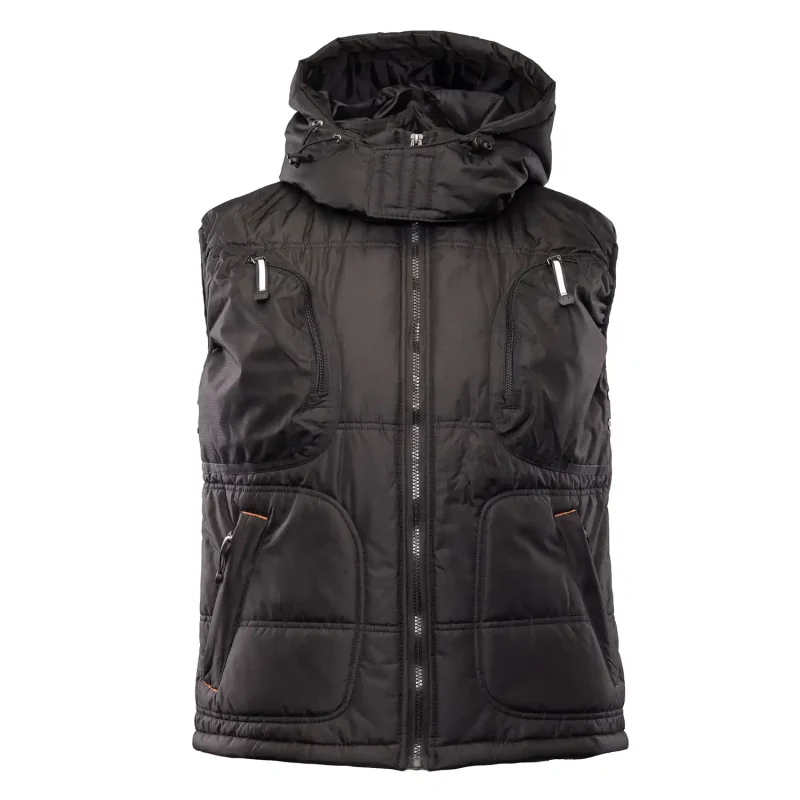 Kamizelka Benefit Negra to solidny i praktyczny bezrękawnik roboczy. Wykonana z wytrzymałego poliestru powleczonego warstwą PCV, charakteryzuje się wodoodpornością, co w połączeniu z ciepłą ociepliną o gramaturze 200 g/m² zapewnia doskonałą barierę termiczną. Unikalną cechą tego modelu jest przedłużony tył, który skutecznie chroni dolne partie pleców i nerki. Funkcjonalność kamizelki podnosi odpinany kaptur z możliwością