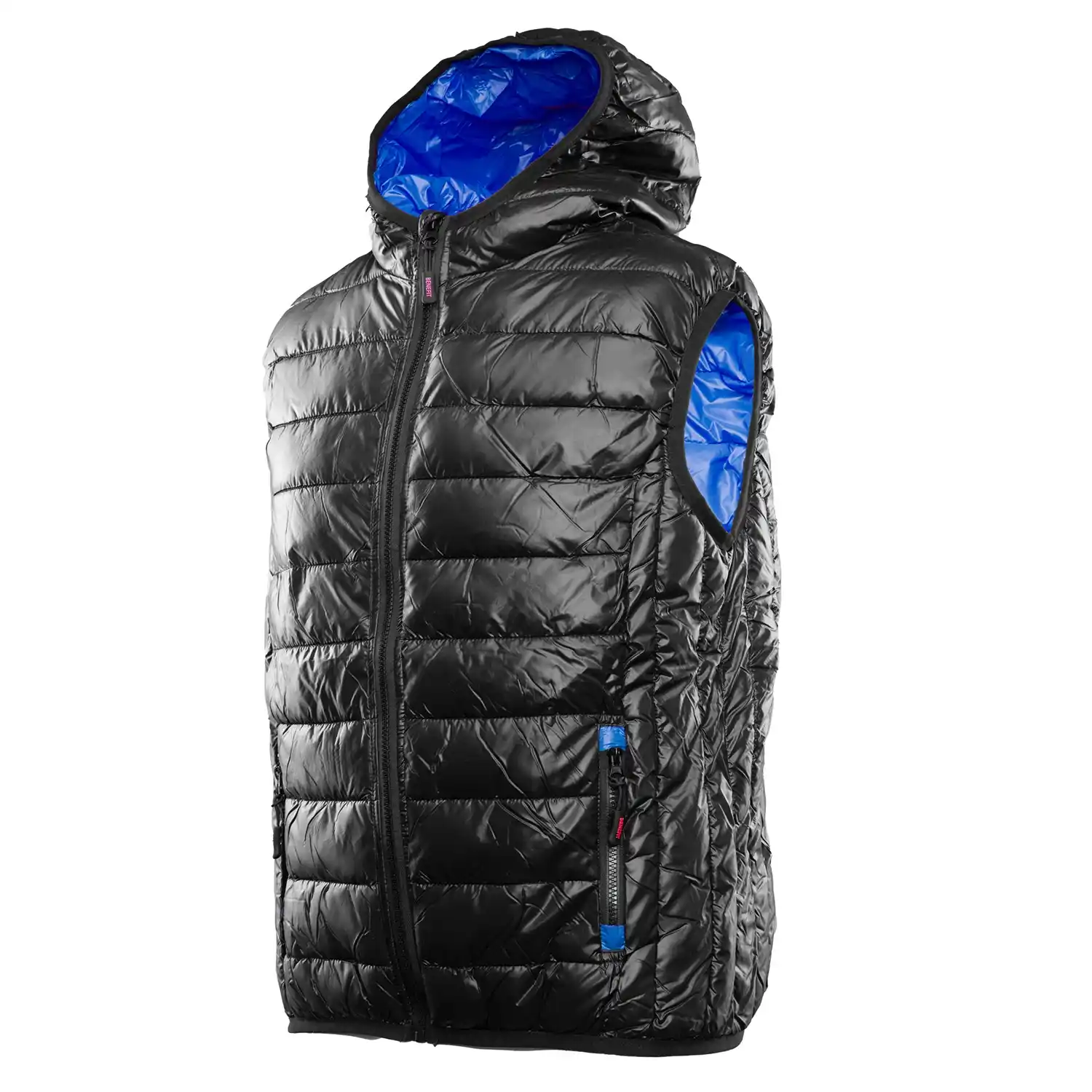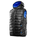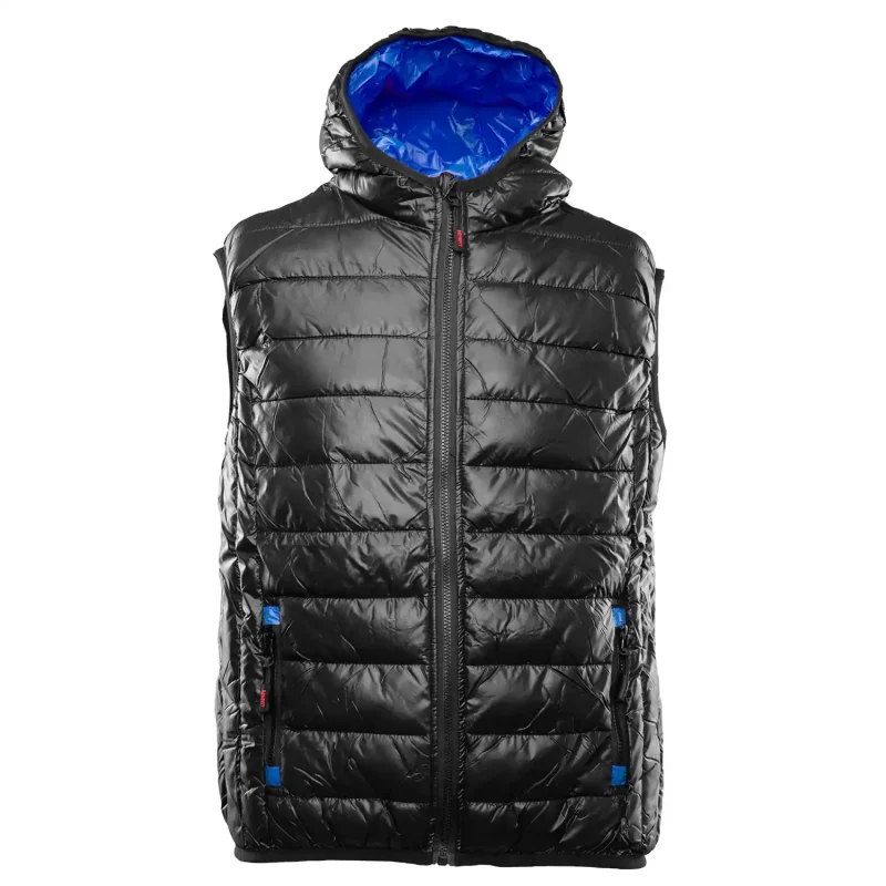 o gramaturze 140 g/m², która została starannie przepikowana wraz z kapturem i podszewką, co zapobiega jej przesuwaniu się i gwarantuje równomierną izolację nawet po wielu praniach. Konstrukcja kamizelki obejmuje ocieplany kaptur oraz solidny zamek kostkowy zabezpieczony od wewnątrz listwą, która skutecznie blokuje przenikanie wiatru. Funkcjonalność modelu zwiększają elastyczne ściągacze u dołu, zapewniające idealne dopasowanie do sylwetki, oraz przemyślany system kieszeni: dwie boczne zapinane na zamek i dwie wewnętrzne na cenne drobiazgi. Produkt zgodny z normami EN ISO 13688:2013/A1:2021.