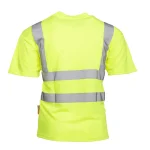 Model Brixton Flash BF-009 to profesjonalna, ostrzegawcza koszulka z krótkim rękawem (T-shirt), dedykowana dla drogowców, budowlańców i logistyków. Wykonana w 100% z elastycznej, jaskrawej tkaniny poliestrowej, zapewnia wysoką odporność na uszkodzenia oraz komfort w upalne dni. Maksymalne bezpieczeństwo na stanowisku pracy zostało zagwarantowane poprzez naszycie podwójnych pasów odblaskowych w układzie pionowym i poziomym, co ułatwia wzrokowe zasygnalizowanie obecności pracownika w każdych warunkach. Koszulka charakteryzuje się solidnym wykończeniem z użyciem wytrzymałych nici oraz elastycznego ściągacza przy dekolcie. Jest to w pełni certyfikowana odzież (Kategoria II, Klasa 2), która spełnia rygorystyczne normy bezpieczeństwa