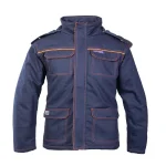 (200 g/m² +/-3%) oraz wewnętrzną podszewkę wykonaną ze 100% bawełny o gramaturze 120 g/m². Wysoką wytrzymałość konstrukcji na uszkodzenia zapewniają solidne, podwójne szwy uszyte widoczną, mocną nicią. Funkcjonalność i skuteczną ochronę przed niekorzystnymi warunkami podnoszą: główne zapięcie na zamek kryty listwą, odpinany, ocieplany i regulowany kaptur, a także wygodne ściągacze w rękawach. Odzież można z łatwością dopasować do sylwetki dzięki gumce i sznurkowi ściągającemu w pasie, a niezbędne narzędzia przechować w dwóch kieszeniach bocznych oraz dwóch kieszeniach górnych krytych listwą zapinaną na napy. Kurtka ta spełnia rygorystyczne wymagania dla specjalistycznych środków ochrony indywidualnej, co w pełni potwierdzają normy ogólne i antystatyczne EN ISO 13688:2013 (na grafice oznaczona również jako EN 13688) oraz EN 1149-5:2018, a także standardy określające zaawansowaną ochronę przed czynnikami gorącymi, płomieniem i dla procesów spawalniczych: EN ISO 11611:2007, EN ISO 11611:2015 A1 A2 CLASS 2 i EN ISO 11612:2015 A1 A2 B1 C1.