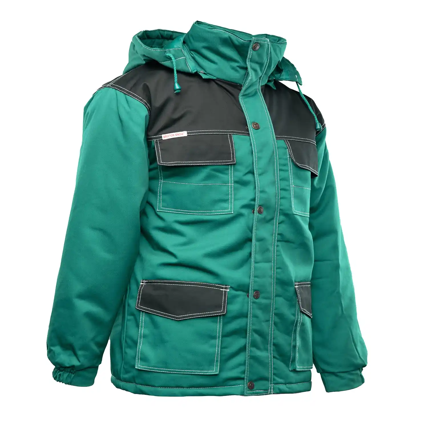 Kurtka ocieplana w typie parki z kolekcji Brixton Snow to profesjonalna odzież robocza, zaprojektowana specjalnie z myślą o pracy w wymagających warunkach zimowych. Uszyta z trwałej mieszanki poliestru (65%) i bawełny (35%) o podwyższonej gramaturze 290 g/m², gwarantuje zachowanie intensywności kolorów i stabilności rozmiarów nawet po wielokrotnym praniu. Doskonałą ochronę przed mrozem zapewnia gruba, poliestrowa ocieplina (200 g/m²) oraz przedłużany tył kurtki, który skutecznie chroni plecy przed przewianiem podczas schylania się. Konstrukcja zastała przystosowana do intensywnego użytkowania, co potwierdzają podwójne szwy wykonane widoczną, mocną nicią. Komfort i zatrzymywanie ciepła potęgują szczelne mankiety ze ściągaczami, dół kurtki