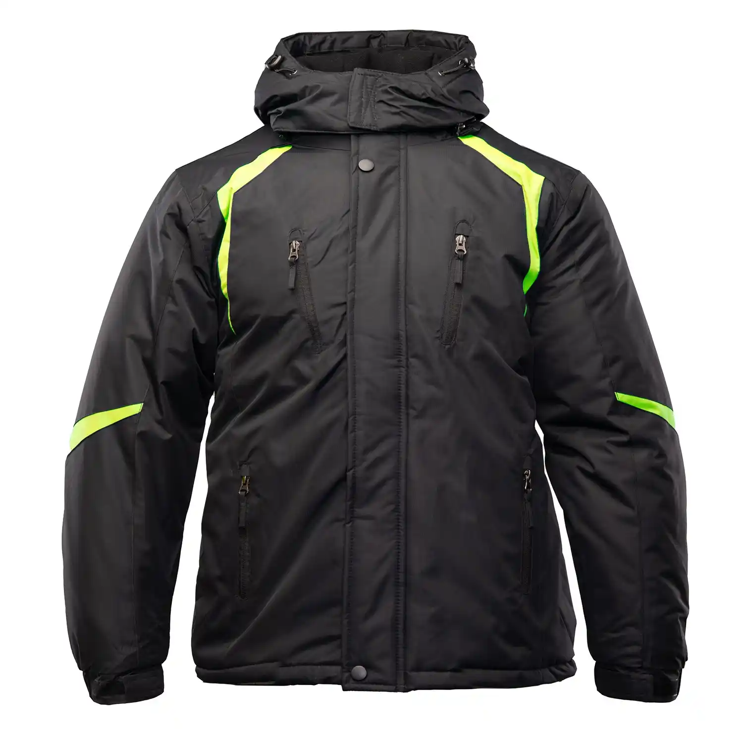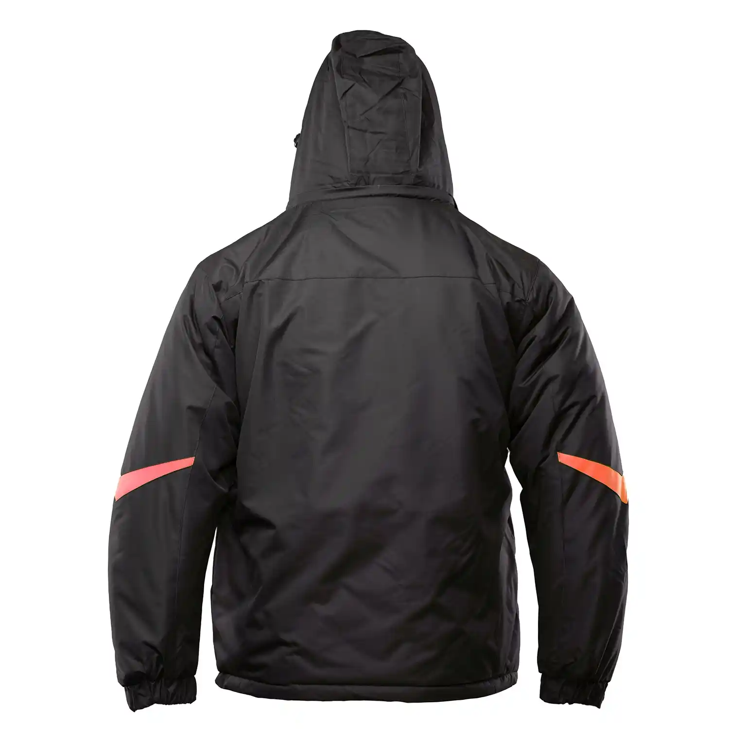 Za komfort termiczny użytkownika odpowiada gruba warstwa ociepliny poliestrowej o gramaturze 200 g/m², która została starannie przepikowana, aby zapobiec jej przesuwaniu się i zbrylaniu w trakcie noszenia czy prania. Konstrukcja kurtki została wyposażona w odpinany, ocieplany kaptur z regulacją oraz wysoki kołnierz. Funkcjonalność modelu podnosi system praktycznych kieszeni zapinanych na zamek: dwie na klatce piersiowej, dwie boczne oraz bezpieczna kieszeń wewnętrzna na dokumenty. Całość dopełniają regulowane mankiety na rzepy oraz możliwość regulacji tęgości u dołu za pomocą gumek ściągających. Produkt spełnia normy EN ISO 13688:2013.