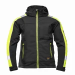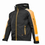 i odprowadzanie wilgoci. Konstrukcja kurtki obejmuje odpinany, regulowany kaptur ocieplony polarem oraz wysoki kołnierz. Użytkownik ma do dyspozycji zestaw kieszeni zapinanych na zamek: dwie boczne, jedną na klatce piersiowej (krytą listwą), praktyczną kieszeń na lewym rękawie oraz dwie kieszenie wewnętrzne. Całość zapinana jest na solidny zamek kostkowy, a dzięki regulowanym mankietom na rzep oraz elastycznym ściągaczom u dołu, kurtkę można idealnie dopasować do sylwetki. Pasy i lamówki odblaskowe zwiększają widoczność
