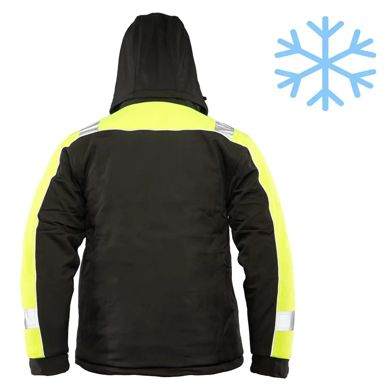 dwie boczne i kieszeń na lewym rękawie zapinane na zamek, dwie kieszenie wewnętrzne oraz kieszeń na klatce piersiowej zapinaną na zamek i krytą listwą. Bezpieczeństwo i widoczność użytkownika podnoszą pasy odblaskowe oraz lamówka odblaskowa.