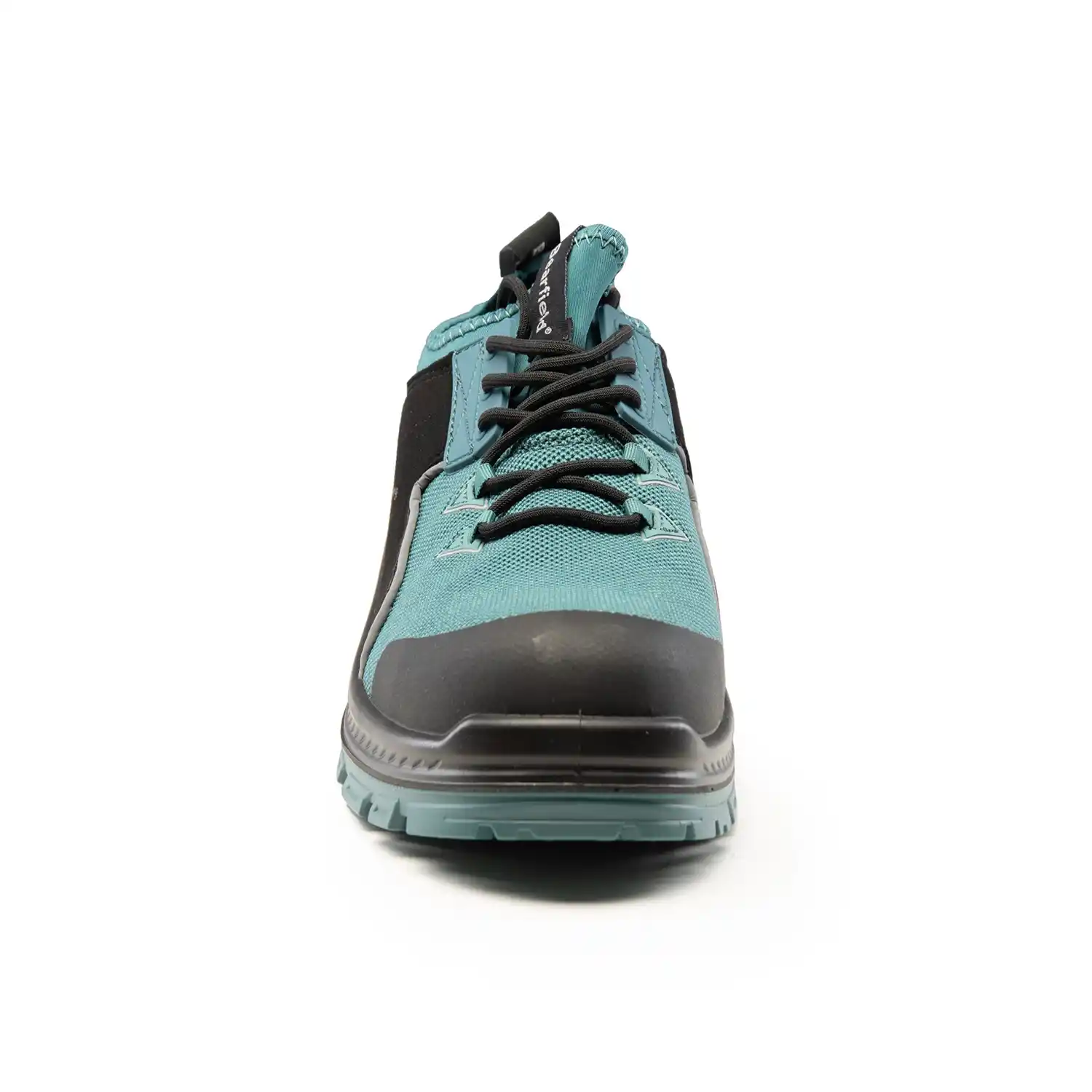Posiada normę EN ISO 20347 Wierzchnia część buta została wykonana z połączenia superwytrzymałej tkaniny poliestrowej oraz solidnej mikrofibry o grubości od 1,8 do 2,0 mm, co gwarantuje bardzo dobrą trwałość materiału. Wnętrze obuwia wyposażono w higroskopijną wyściółkę z przewiewnej tkaniny, która doskonale wchłania pot i skutecznie zapobiega powstawaniu uciążliwych otarć podczas intensywnej pracy. Komfort codziennego użytkowania znacząco podnosi również wymienna wkładka, która wykazuje pożądane właściwości antybakteryjne i antygrzybiczne. Stabilność i pewność każdego kroku zapewnia podeszwa z poliuretanu o podwójnej gęstości (PU/PU), wykazująca właściwości antypoślizgowe klasy SR. Podeszwa ta charakteryzuje się ponadto pełną odpornością na działanie oleju napędowego (FO). Bezpieczeństwo pracownika w warunkach gorszego oświetlenia podnoszą z kolei umieszczone na obuwiu elementy odblaskowe.