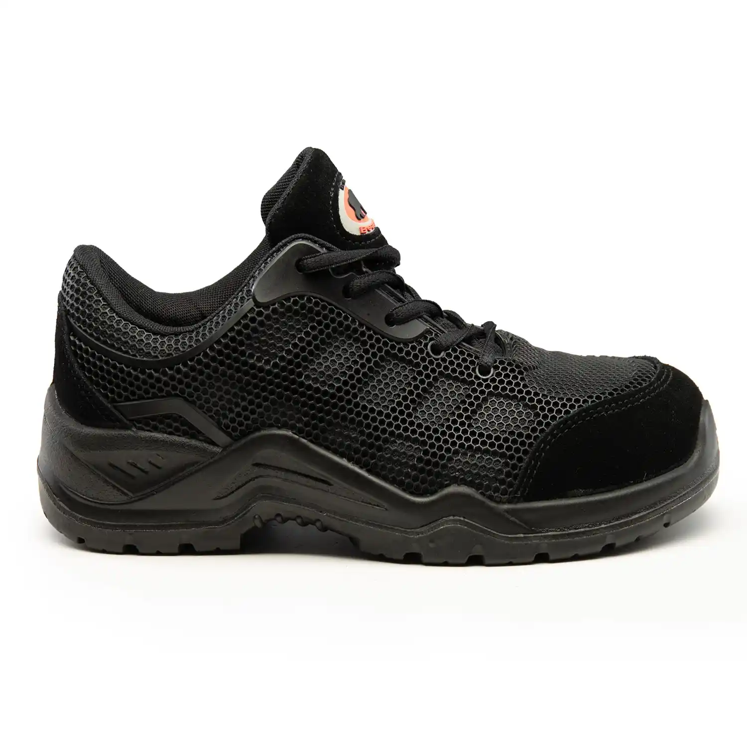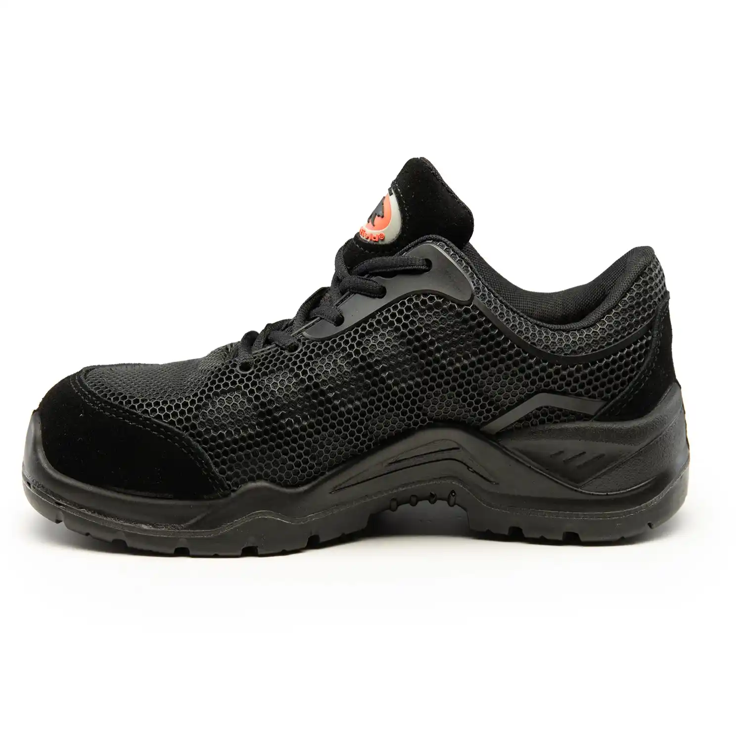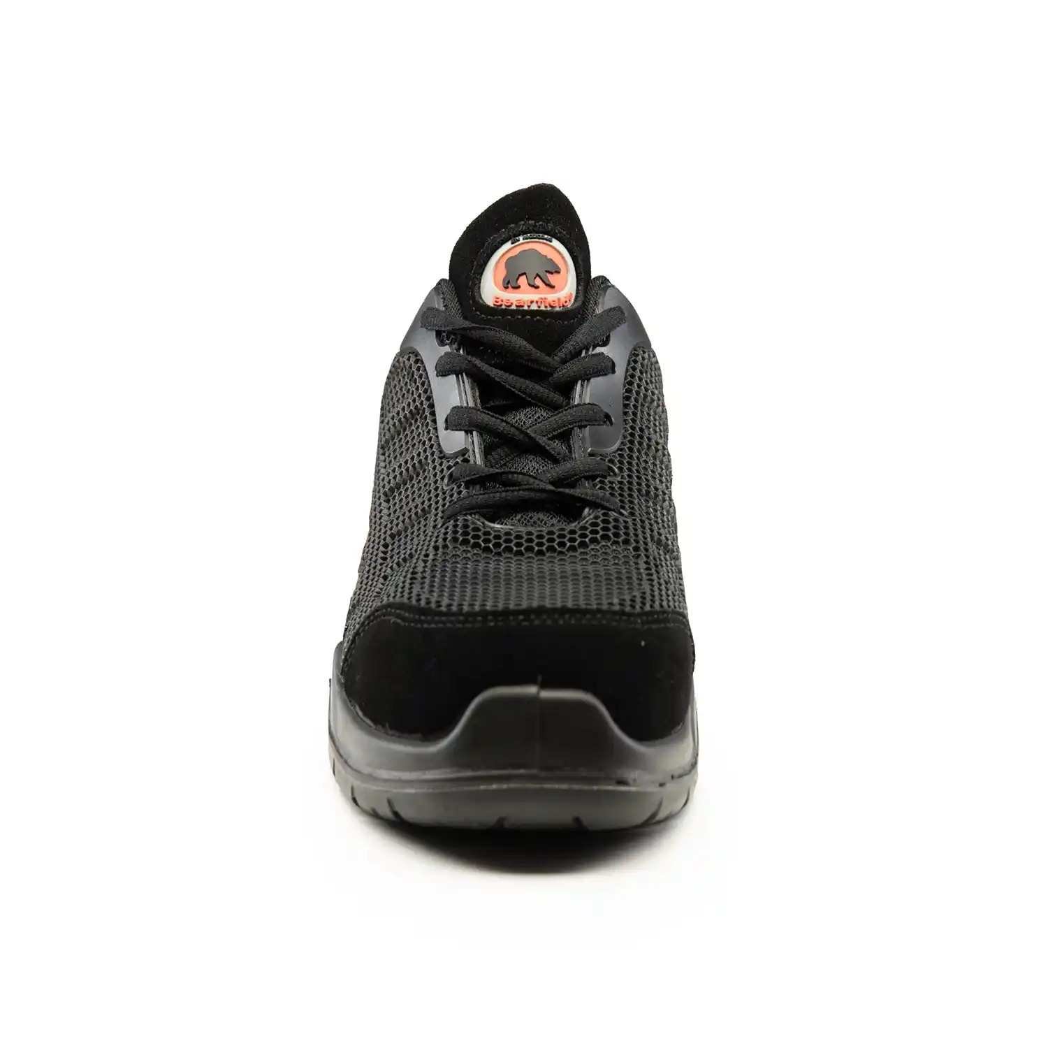 Specjalistyczne półbuty robocze marki Bearfield to wiązane obuwie ochronne sklasyfikowane w kategorii S1-P, charakteryzujące się konstrukcją całkowicie pozbawioną elementów metalowych (Metal-Free). Wierzchnia część buta została wykonana z oddychającej siateczki ze wzmocnionego poliuretanu (materiał syntetyczny) oraz wytrzymałej skóry zamszowej. Wnętrze obuwia wyposażono w higroskopijną wyściółkę z przewiewnej tkaniny, która doskonale wchłania pot i skutecznie zapobiega otarciom. Dodatkowy komfort użytkowania gwarantuje wymienna wkładka oraz gruby, miękki miechowy język. Ochronę palców zapewnia lekki, kompozytowy podnosek, który jest wytrzymały na uderzenia z energią 200 J oraz zgniecenia do 15 kN. Przed niebezpiecznym przekłuciem o nacisku 1100N stopę od spodu zabezpiecza elastyczna, kevlarowa wkładka antyprzebiciowa. Stabilność każdego kroku gwarantuje podeszwa z poliuretanu o podwójnej gęstości (PU/PU), która wykazuje właściwości antypoślizgowe klasy SRC. Ponadto podeszwa ta jest odporna na węglowodory oraz oleje, posiada niezbędne właściwości antyelektrostatyczne i zapewnia absorpcję energii w części piętowej. Wysoka jakość i niezawodność tego modelu zostały w pełni potwierdzone zgodnością z rygorystyczną normą EN ISO 20345.