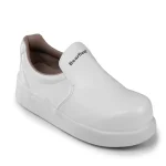 Białe półbuty robocze typu Metal-Free o kategorii ochrony O2, sygnowane normą EN ISO 20345, wykonane z mikrofibry pokrytej poliuretanem o podwyższonej wodoodporności. Posiadają higroskopijną wyściółkę oraz antypoślizgową podeszwę (SR) odporną na węglowodory (FO).