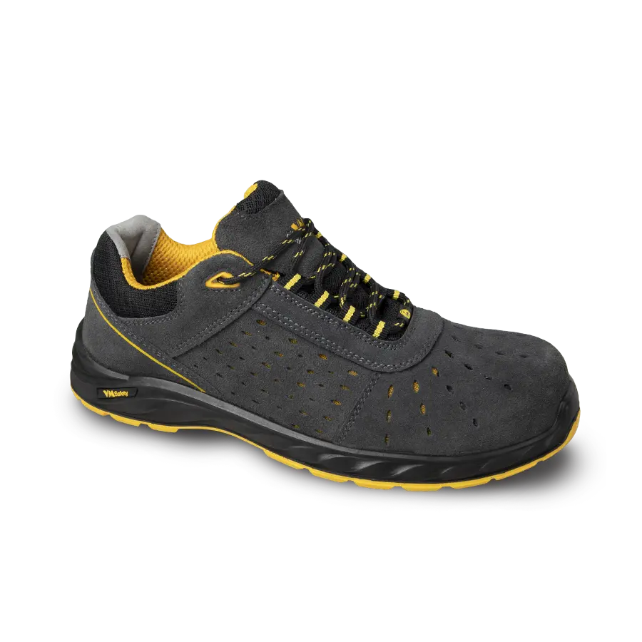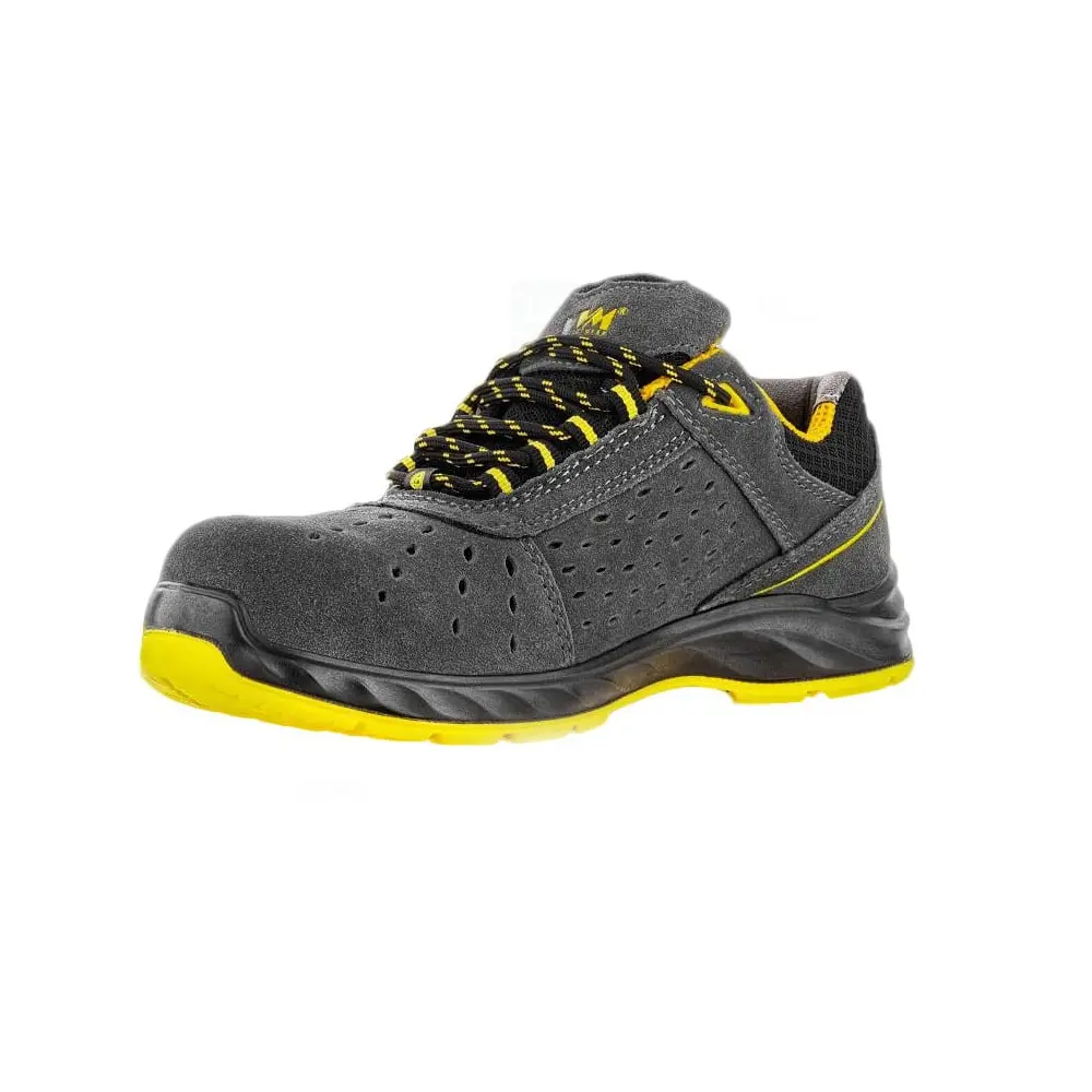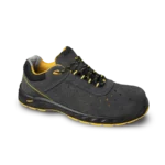 Niskie półbuty ochronne wykonane są ze skóry welurowej o grubości 1,7–1,9 mm, z oddychającą podszewką MESH i antystatyczną, lekką wkładką HI-POLY — co zapewnia trwałość, przewiewność i komfort. Model jest całkowicie niemetalowy i wyposażony jest w kompozytowy podnosek klasy S1, a ponadto spełnia wymogi ESD — zapewniając ochronę przed wyładowaniami elektrostatycznymi zgodnie z normą EN 61340-5-1. Podeszwa PU/PU o podwójnej gęstości powstaje w technologii dwukrotnego wtrysku i cechuje się odpornością na oleje, antystatycznością oraz znakomitą przyczepnością (SRC). Spełnia również normę EN ISO 20345 (2022) — klasyfikacja S1 FO SR ESD — co potwierdza obecność ochrony przed olejem (FO), antypoślizgową właściwość (SR) oraz ochronę elektrostatyczną ESD. Buty dostępne są w szerokim zakresie rozmiarów 36–48, co ułatwia dobranie odpowiedniego rozmiaru dla większości użytkowników.