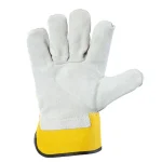 Rękawice robocze wzmacniane skórą to solidny środek ochrony indywidualnej, którego konstrukcja opiera się na wytrzymałym drelichu bawełnianym z wygodnym, jednostronnym wypodszewkowaniem. Część dłoniowa, a także newralgiczne miejsca takie jak kciuk i palec wskazujący, zostały wykonane z wysokiej jakości bydlęcej skóry dwoinowej (jakość A/B), co znacząco podnosi ich trwałość. Stabilne ułożenie na dłoni oraz dodatkowe zabezpieczenie przedramienia gwarantuje sztywny, podgumowany mankiet. Rękawice spełniają wymagania norm EN 420:2003 + A1:2009 oraz EN 388, oferując doskonały poziom ochrony przed uszkodzeniami mechanicznymi. Wyróżniają się one między innymi najwyższą (czwartą) klasą odporności na ścieranie i przedarcie, a także odpornością na przebicie na poziomie 3 i przecięcie na poziomie 1.