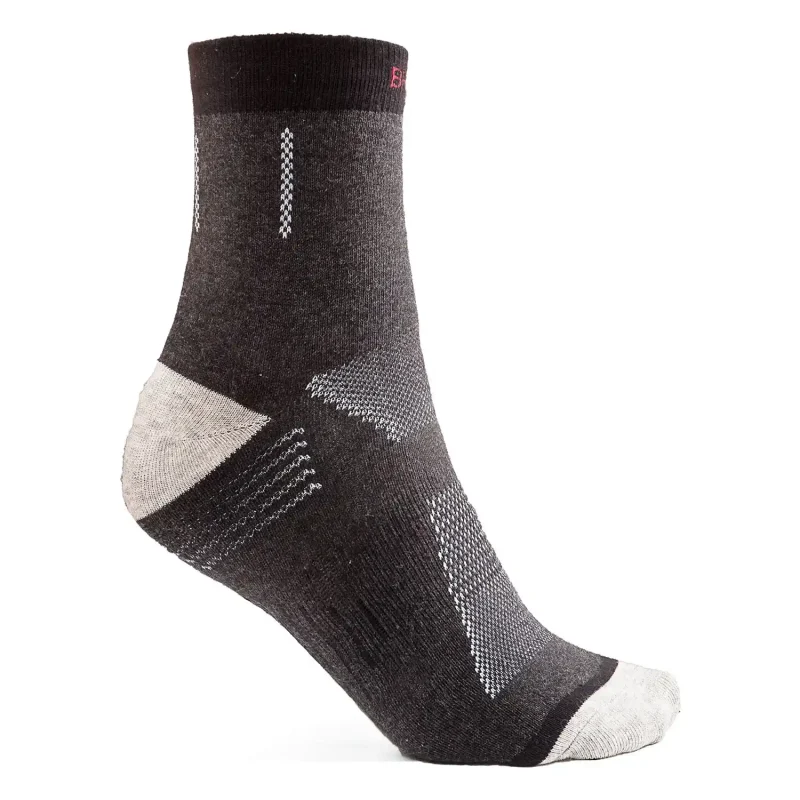 Skarpety termiczne Brixton to niezawodna ochrona przed chłodem, wykonana z trwałej i ciepłej mieszanki bawełny (75%), poliestru (20%), spandexu (3%) i nylonu (2%). Dzięki optymalnej elastyczności idealnie dopasowują się do stopy, wzmocniona struktura zapewnia długotrwały komfort wewnątrz każdego obuwia roboczego.