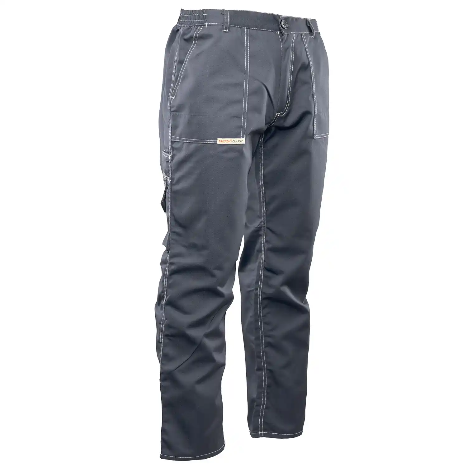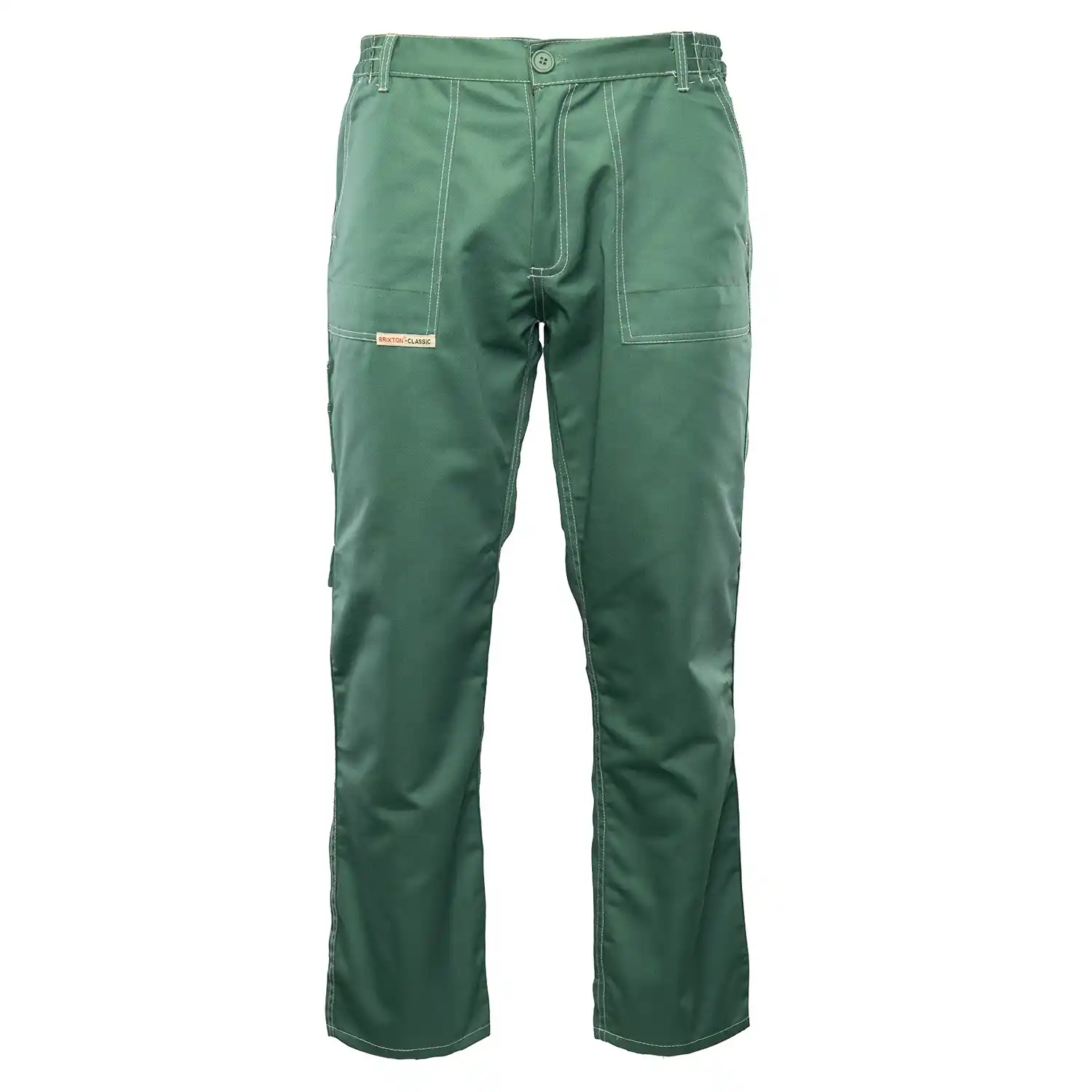 Spodnie robocze do pasa Brixton Classic, spełniające wymagania normy EN 13688, wykonane są z wysokiej jakości materiału o gramaturze 290 g/m² (skład: 65% poliester, 35% bawełna). Tkanina ta zapewnia stabilność rozmiarów
