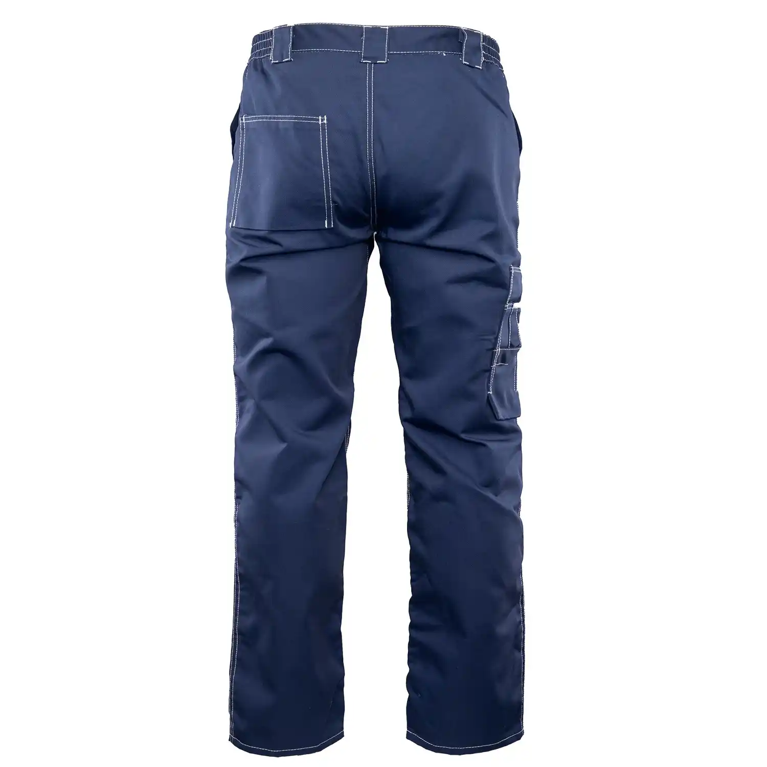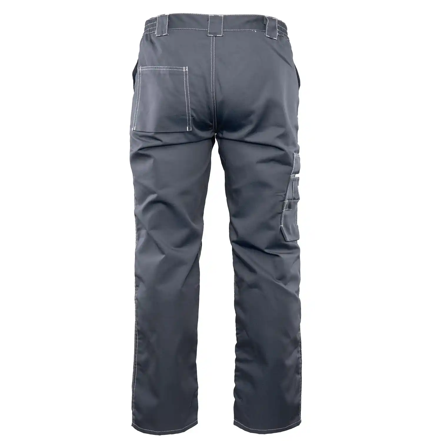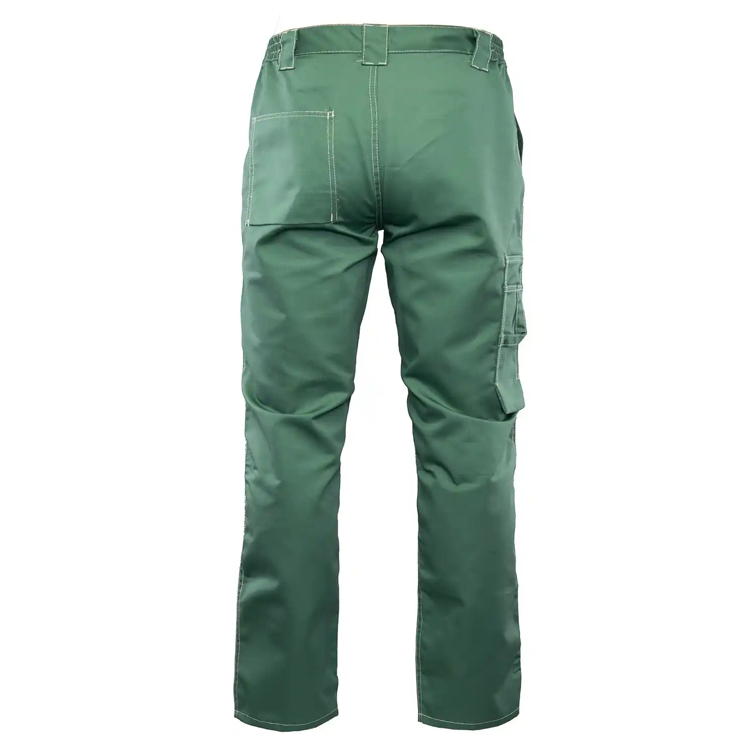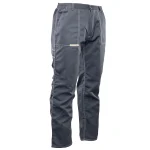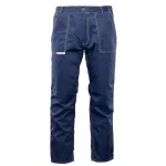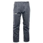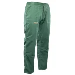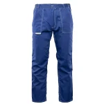 i barw nawet po wielokrotnym praniu. Wytrzymałość konstrukcji gwarantują podwójne szwy szyte widoczną, mocną nicią oraz duża liczba ryglówek w miejscach szczególnie narażonych na rozprucie. Spodnie posiadają dopasowany krój z możliwością regulacji obwodu dzięki wszytej w pasie gumce oraz praktyczne szlufki na pasek i młotek. Funkcjonalność modelu podnoszą wzmocnione kieszenie: dwie boczne, jedna w tylnej części oraz specjalistyczna kieszeń na miarkę „metrówkę” i telefon komórkowy.
