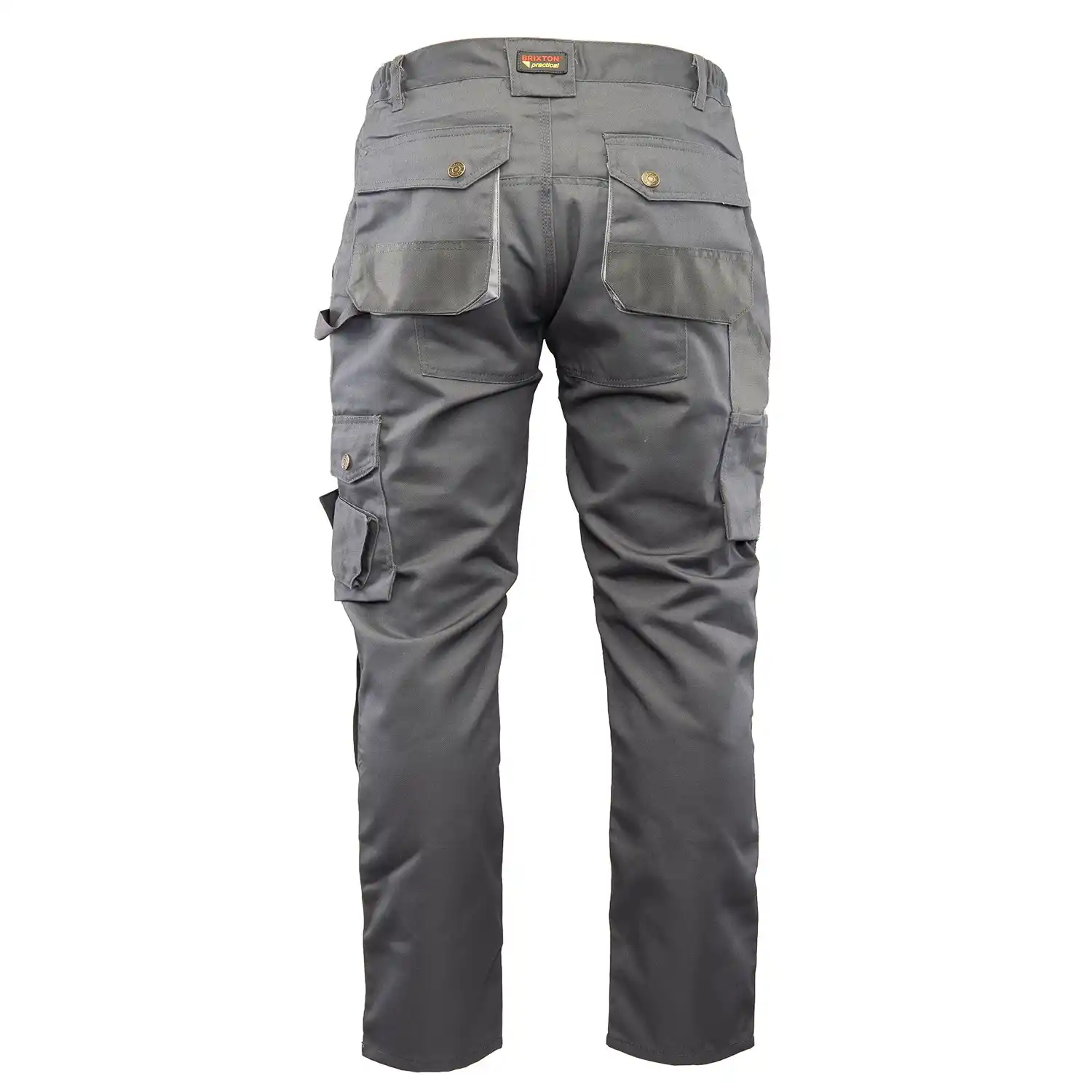 tu podwójne i potrójne szwy szyte mocną nicią, liczne ryglówki zapobiegające rozpruciu oraz specjalne wzmocnienie z tyłu na pośladkach. Ergonomię pracy w pozycji klęczącej gwarantują specjalistyczne kieszenie