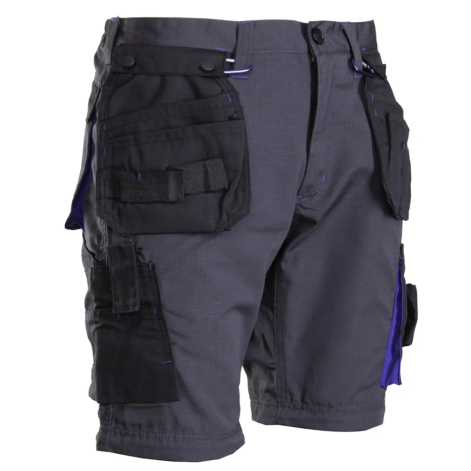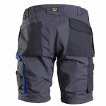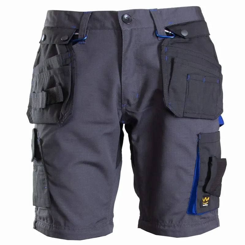 w kroku, który zwiększa swobodę ruchów, a dopasowanie do sylwetki ułatwia gumka w pasie oraz szlufki na pasek. Funkcjonalność modelu podnoszą dwie odpinane na zamek kieszenie monterskie. Spodenki wyposażono ponadto w dwie kieszenie w tylnej części, dwie kieszenie boczne, wzmocnione kieszenie zapinane na rzepy, dedykowane miejsca na telefon i miarkę „metrówkę” oraz szlufkę na młotek. Estetykę wykończenia dopełnia lamówka.