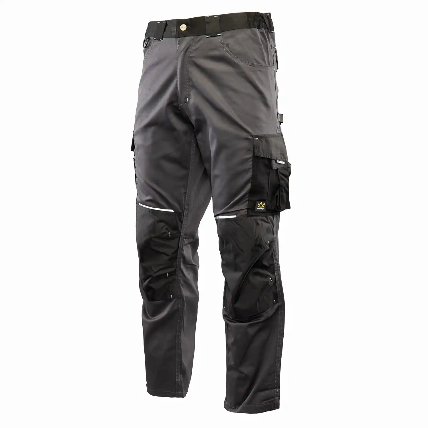 Profesjonalne spodnie do pasa łączące wytrzymałość z elastycznością. Zaprojektowane do pracy w ruchu, z naciskiem na ergonomię i organizację narzędzi. Spodnie wykonane z wysokiej jakości materiałów (bawełna 60%, poliester 37%, spandex 3%) o gramaturze 265 g/m². Szyte mocną nicią, posiadają podwójne szwy oraz dodatkowe ryglówki zabezpieczające miejsca narażone na rozprucie. Dwie boczne, dwie tylne kieszenie, dodatkowa kieszeń na metrówkę, szlufka na młotek, kieszeń na telefon. Dodatkowo spodnie są zaopatrzone w D-ring
