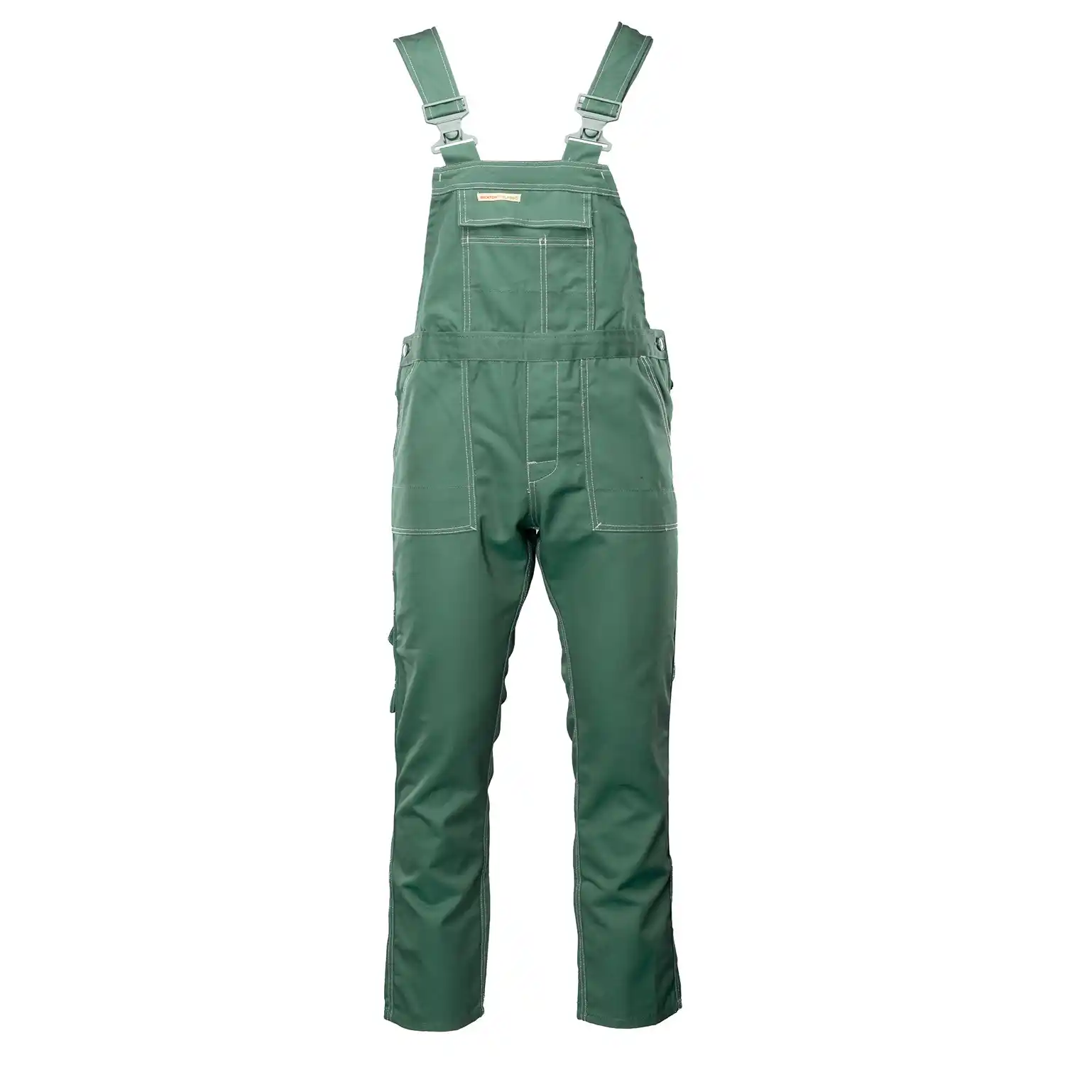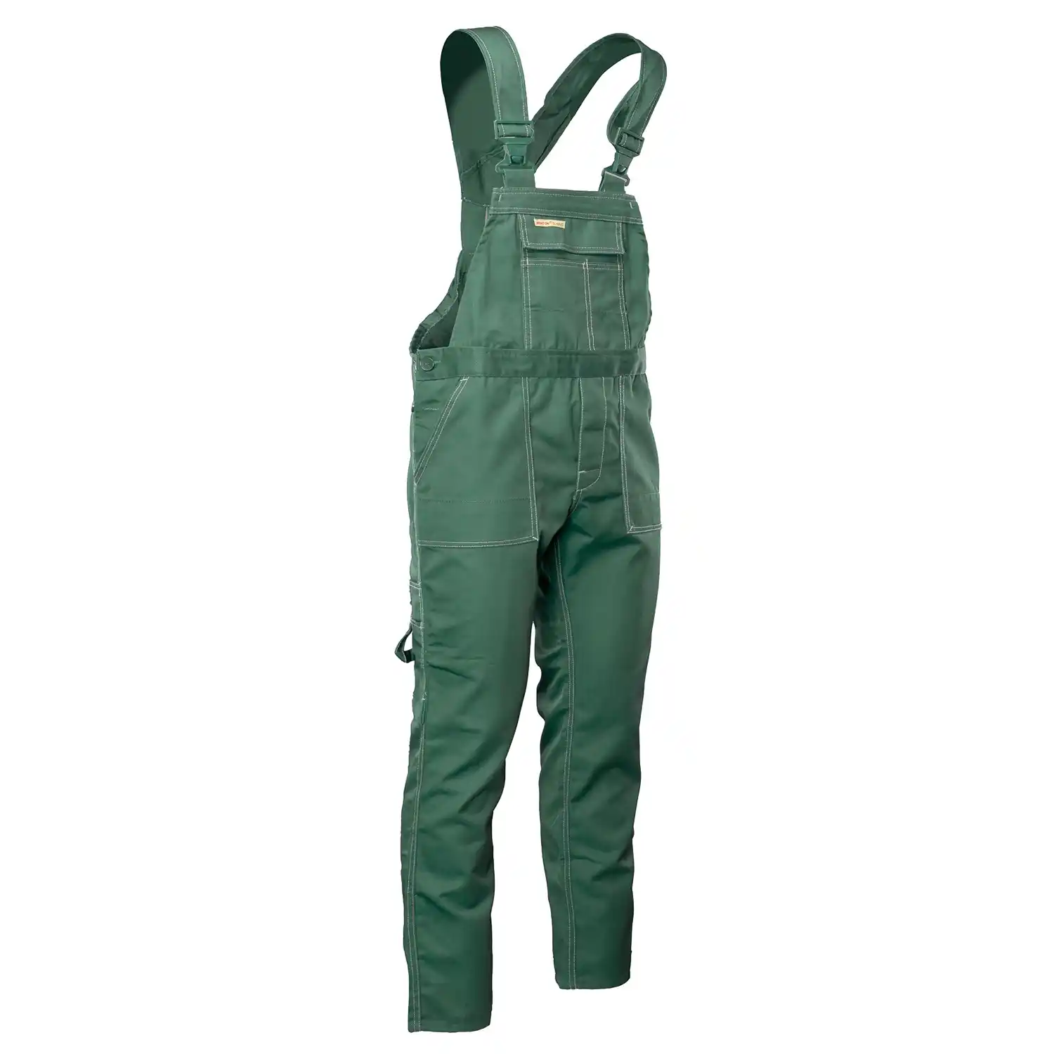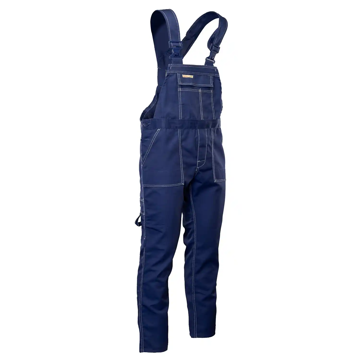 Komfort użytkowania i swobodę ruchów zapewniają długie, szerokie szelki z regulacją oraz możliwość dopasowania obwodu w pasie dzięki guzikom i gumce wszytej w tylnej części. Model wyposażono w praktyczny system kieszeni, obejmujący wewnętrzną kieszeń na dokumenty zapinaną na zamek, wzmocnione kieszenie boczne, kieszeń zapinaną na rzep, a także dedykowane miejsca na telefon komórkowy, długopisy i miarkę „metrówkę” oraz szlufkę na młotek.