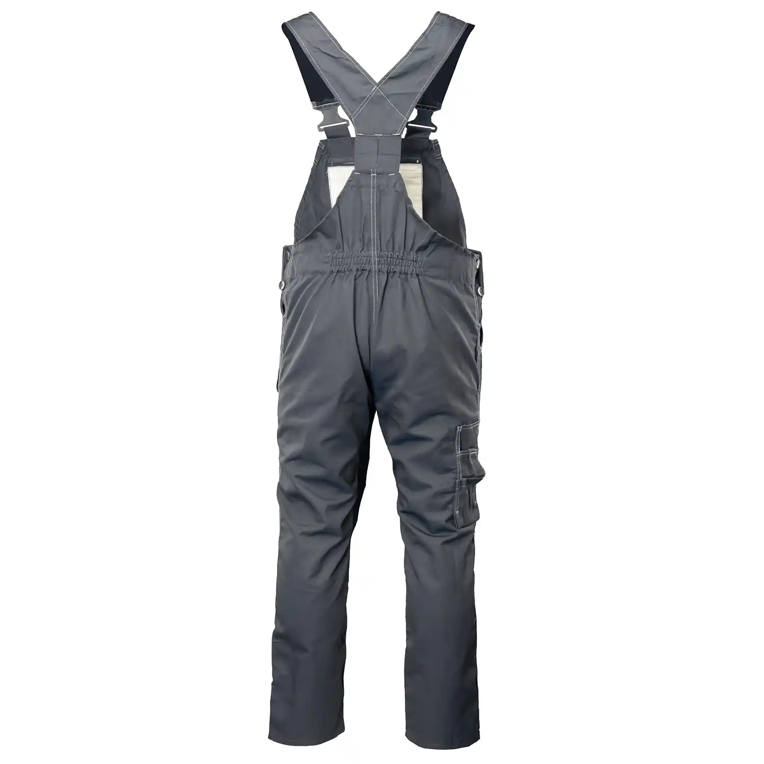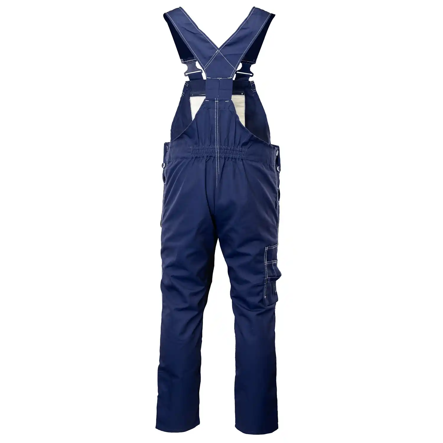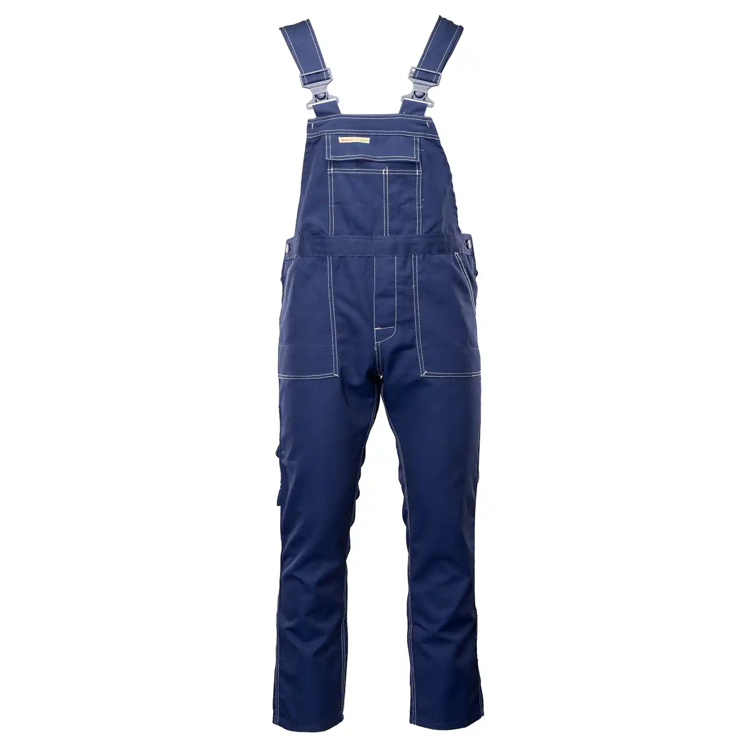 Komfort użytkowania i swobodę ruchów zapewniają długie, szerokie szelki z regulacją oraz możliwość dopasowania obwodu w pasie dzięki guzikom i gumce wszytej w tylnej części. Model wyposażono w praktyczny system kieszeni, obejmujący wewnętrzną kieszeń na dokumenty zapinaną na zamek, wzmocnione kieszenie boczne, kieszeń zapinaną na rzep, a także dedykowane miejsca na telefon komórkowy, długopisy i miarkę „metrówkę” oraz szlufkę na młotek.