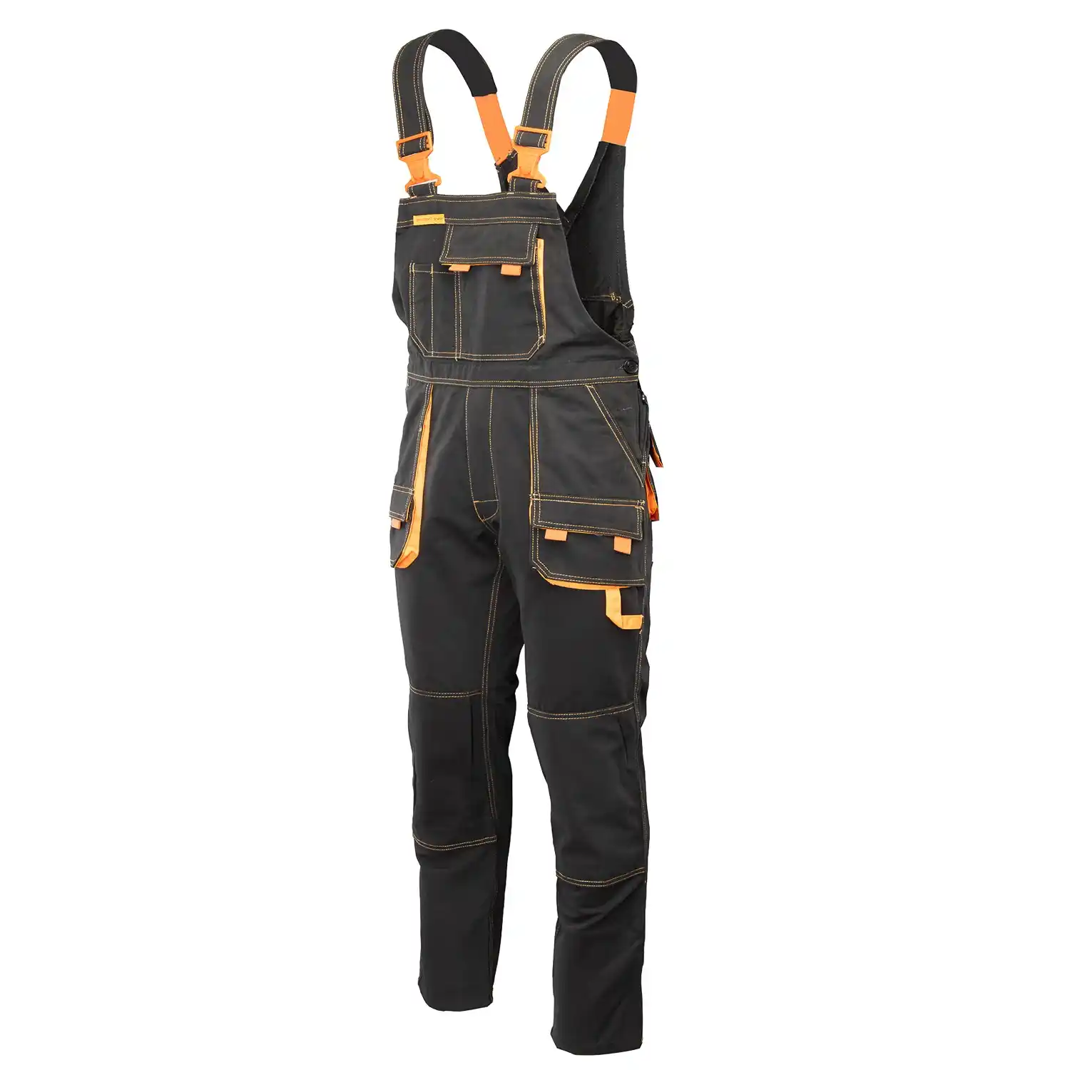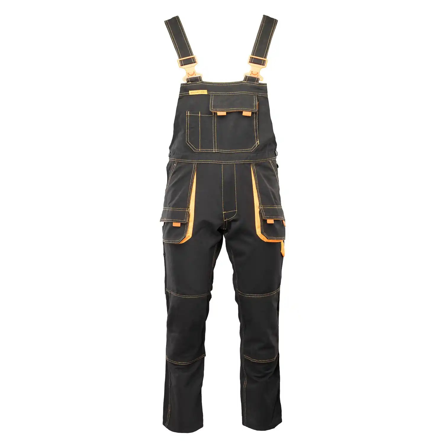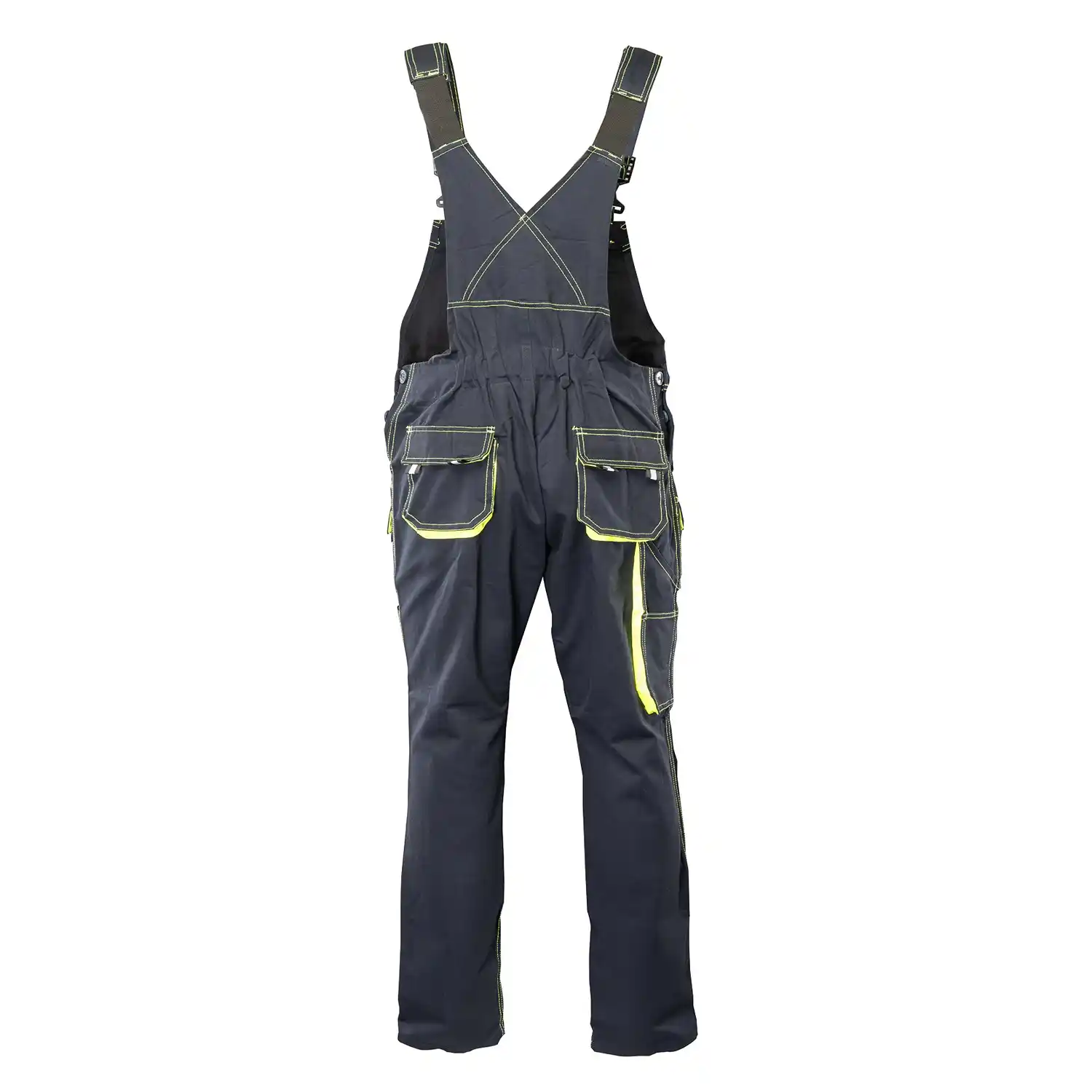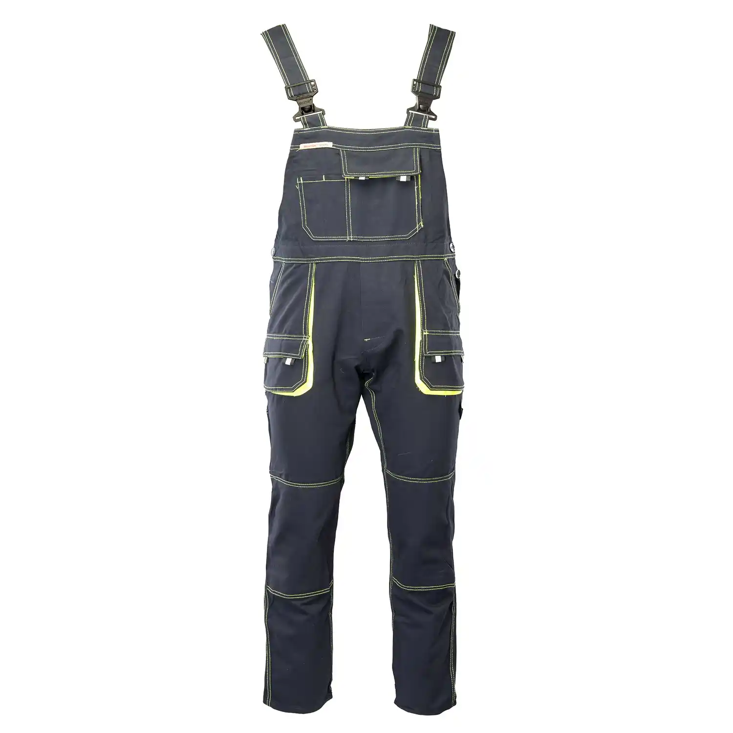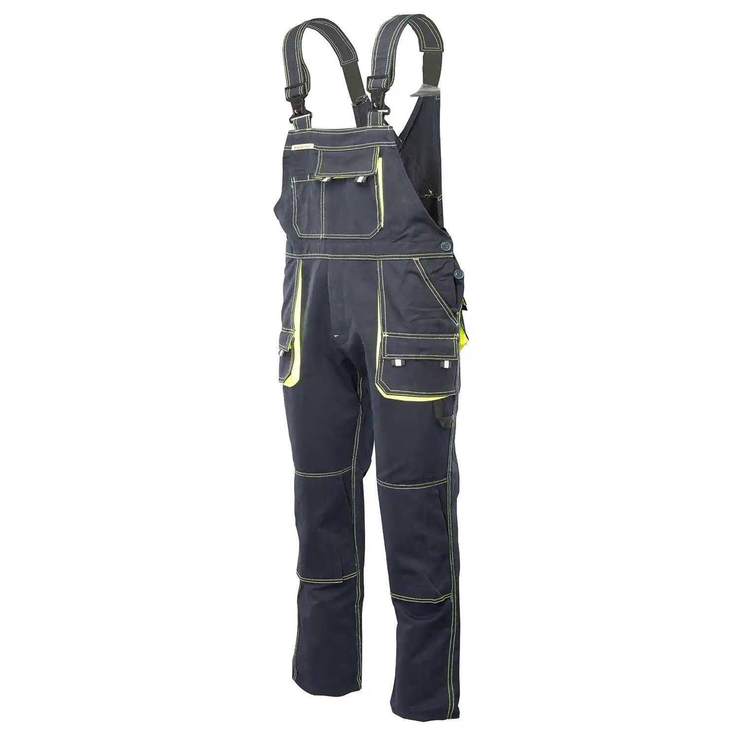 o gramaturze 300 g/m². Dzięki takiej konstrukcji odzież wyróżnia się dużą odpornością mechaniczną oraz doskonałą wentylacją. Trwałość odzieży zapewniają podwójne szwy, grube nici i liczne ryglówki. Ochronę kolan gwarantują wbudowane kieszenie na nakolanniki. Spodnie oferują ogromną przestrzeń na narzędzia i akcesoria dzięki przemyślanemu układowi kieszeni (w tym przestrzennych na rzepy, na dokumenty, metrówkę i telefon). Dzięki elastycznej gumce w pasie, możliwości zapięcia na guziki oraz szerokim szelkom, ogrodniczki można łatwo