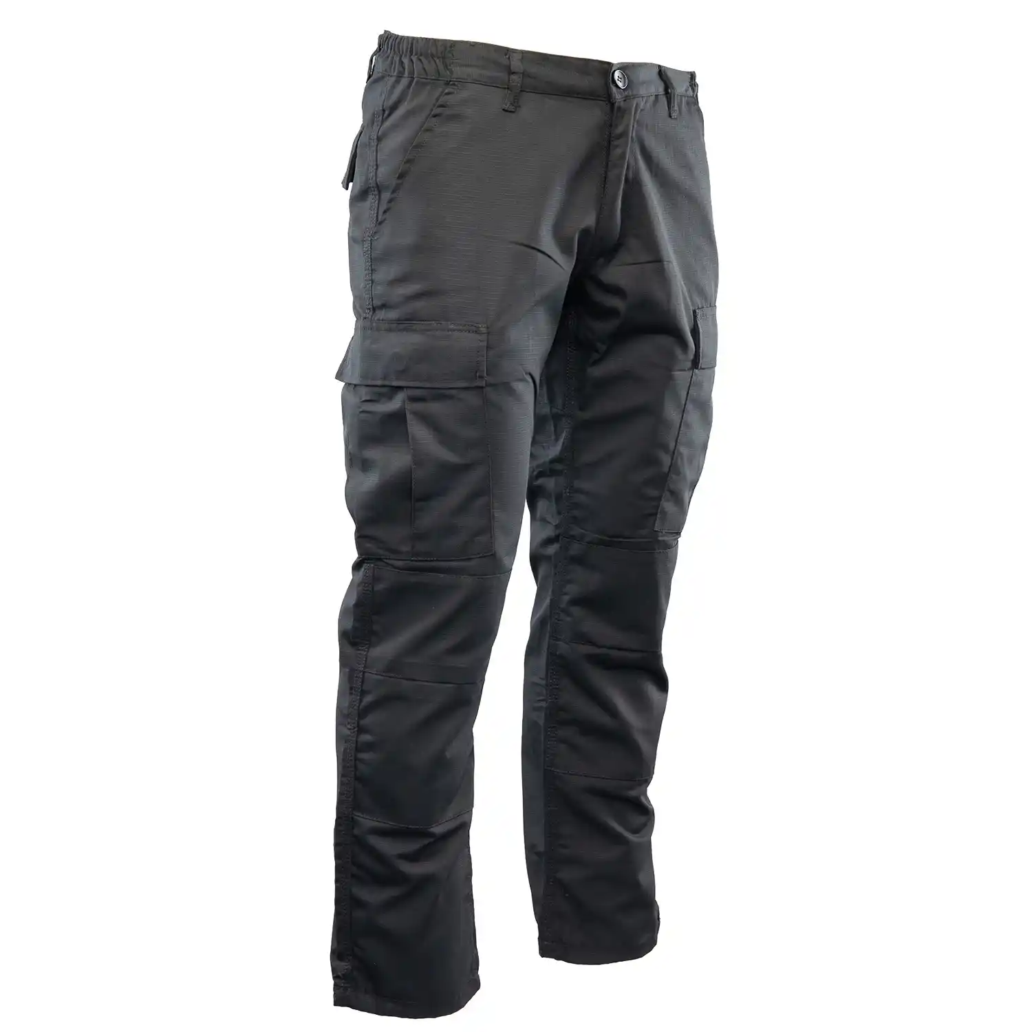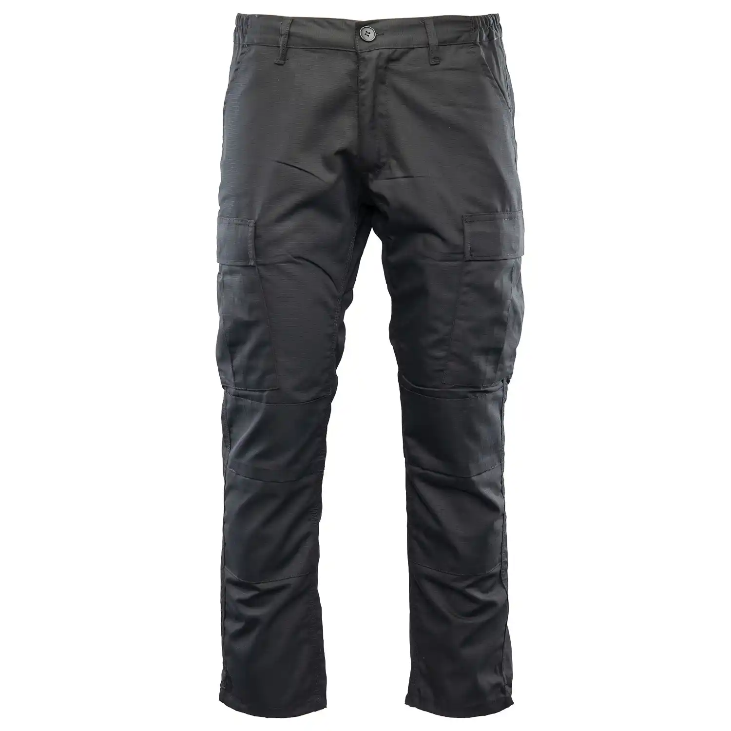 Materiał ten gwarantuje stabilność rozmiarów i kolorów nawet po wielokrotnym praniu. Trwałość konstrukcji zapewniają podwójne i potrójne szwy szyte mocną nicią, liczne ryglówki w miejscach narażonych na rozprucie oraz dodatkowe wzmocnienia z tyłu i na wysokości kolan. Komfort użytkowania podnosi dopasowany krój z elastyczną gumką w pasie, szlufki na pasek oraz ściągacze ze stoperem umożliwiające regulację szerokości nogawek.