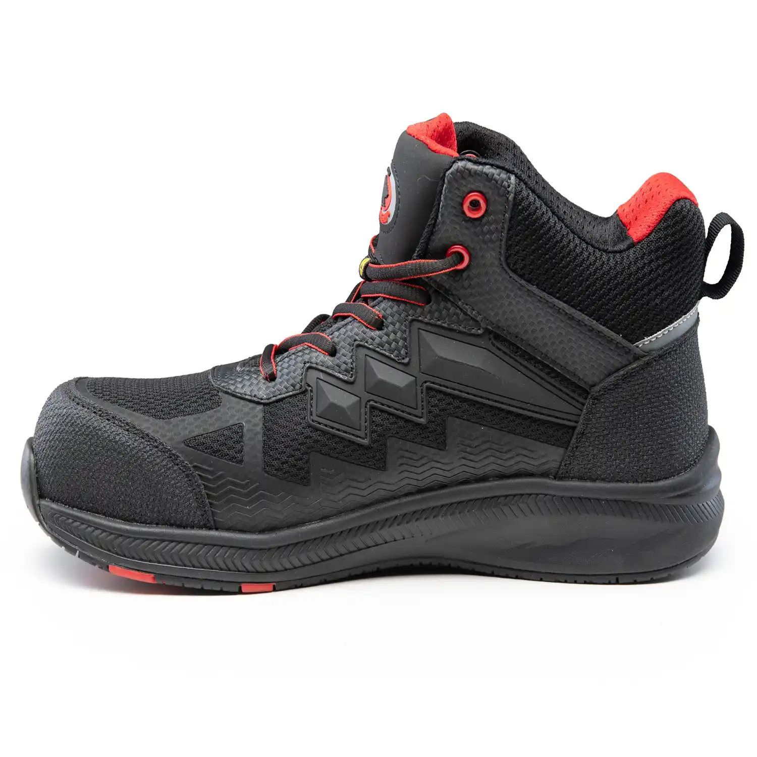(ochrona przed uderzeniami 200 J i zgnieceniem 15 kN) oraz kevlarowa wkładka zabezpieczająca przed przekłuciem od spodu (1100N). Podeszwa z połączenia tworzywa EVA i gumy jest antyelektrostatyczna, antypoślizgowa (SR), odporna na olej napędowy (FO), absorbuje energię w pięcie i posiada właściwości rozpraszające ESD zgodnie z normą EN ISO 61340-5-1-1:2016.
