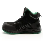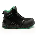 od elementów metalowych (Metal-Free). Komfort użytkowania gwarantuje gruby, miękki język miechowy oraz higroskopijna wyściółka z przewiewnej tkaniny, która wchłania pot i zapobiega otarciom. Za bezpieczeństwo odpowiada wytrzymały podnosek kompozytowy (ochrona przed uderzeniami 200 J i zgnieceniem 15 kN) oraz elastyczna, kevlarowa wkładka antyprzebiciowa (1100 N). Podeszwa wykonana z poliuretanu o podwójnej gęstości (PU/PU) charakteryzuje się właściwościami antyelektrostatycznymi, odpornością na węglowodory i olej napędowy (FO), systemem absorpcji energii w pięcie oraz antypoślizgowością klasy SR. Obuwie wyposażono w wymienną wkładkę oraz elementy odblaskowe zwiększające widoczność.
